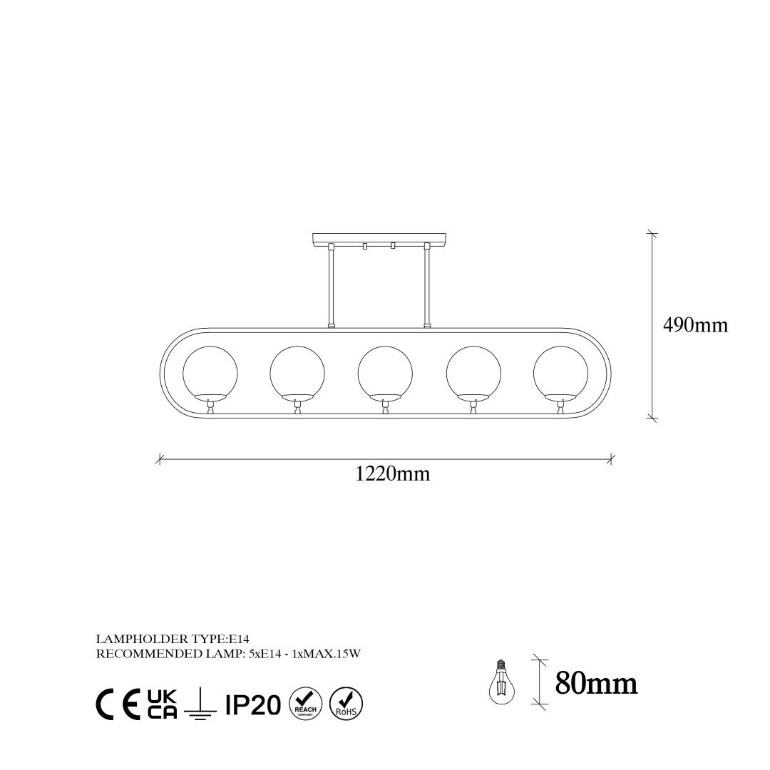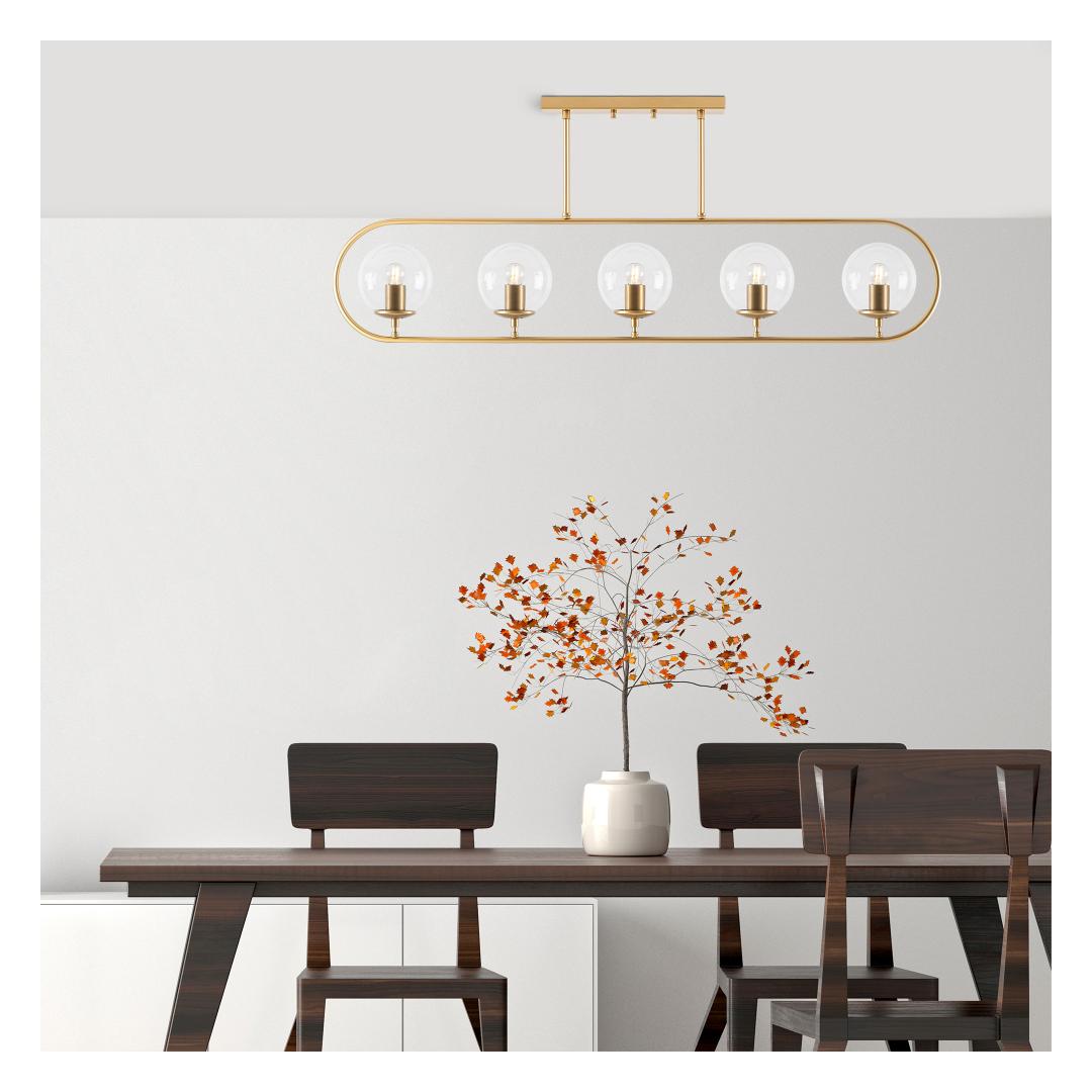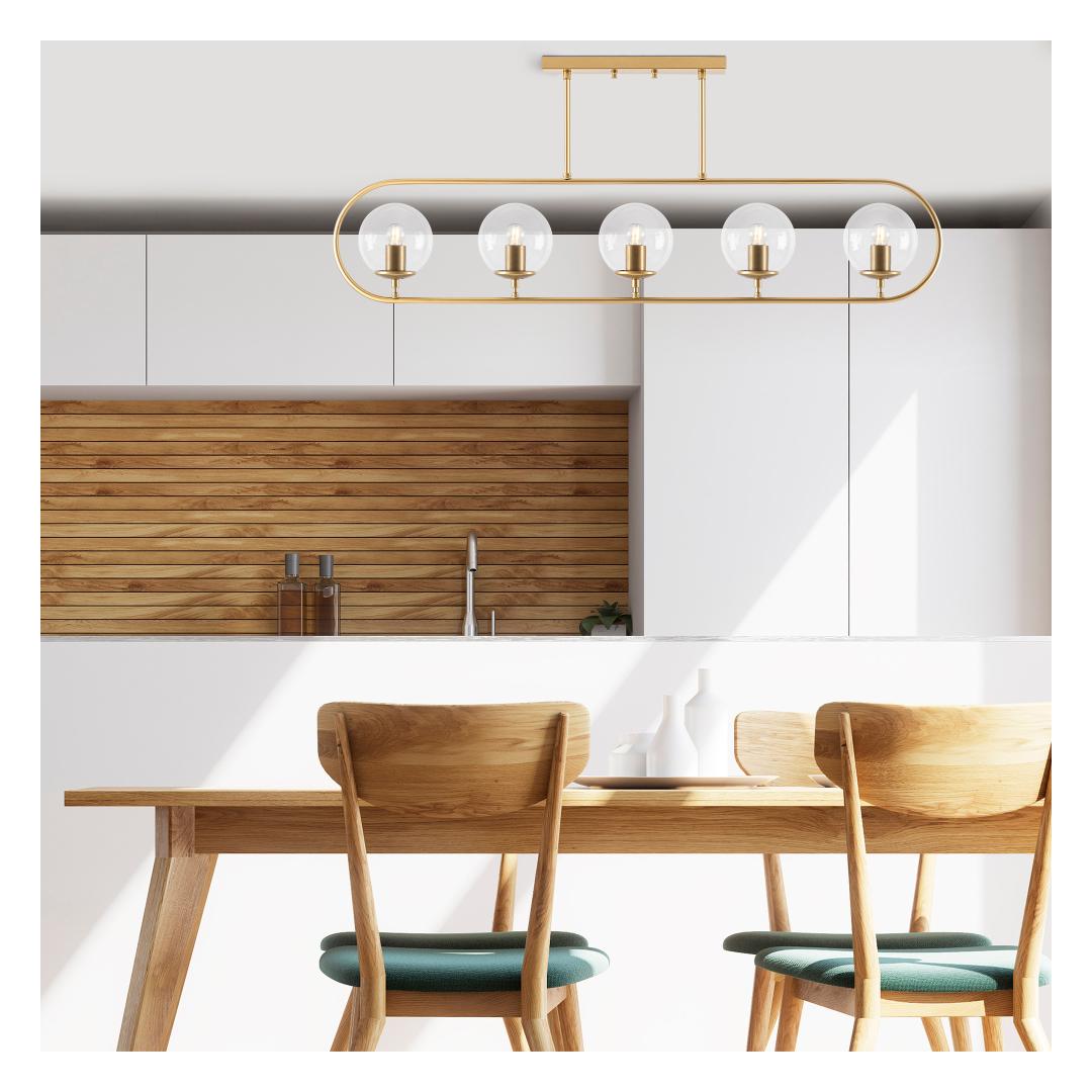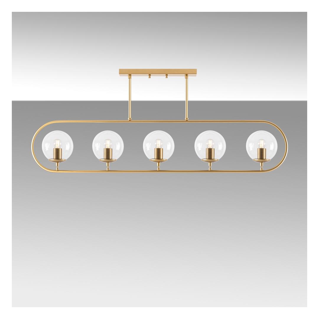 Muuda oma eluruum luksuslikuks oaasiks meie hämmastava kuldse lühtri abil. See erakordne ese omab sujuvat metallist keha koos klaaskattega, kiirgades elegantsi ja rafineeritust. Kaasaegne disain lisab igasse ruumi värskendava puudutuse, muutes selle ideaalseks väljendusdetailiks sinu kodus.Tõsta oma ruumiValgusta oma ruumi selle kauni lühtri sooja kuma abil, luues hubase ja kutsuva atmosfääri, millest saavad osa nii sina kui ka sinu külalised. Tugev vaskne värv lisab veidi glamuurit, samas kui Skandinaavia inspireeritud disain toob sinu sisustusse modernsuse tunde.Ükski kvaliteet ei ületa sedaValmistatud metallist aluspaneelist ja vastupidavast klaaskattest, on see lühter loodud kestma aastaid. Kuldne viimistlus lisab luksuse puudutuse, muutes selle ideaalseks lisandiks igasse ruumi sinu kodus.Tehnilised andmed:Suurus: 122 x 15 cmKogu kõrgus: 49 cmKatte diameeter: 15 cmAluspaneeli suurus: 36 x 5 x 3 cmIP20Pesade tüüp: 5 x E 14 Max 15 WVärv: Kuld Värv: Gold