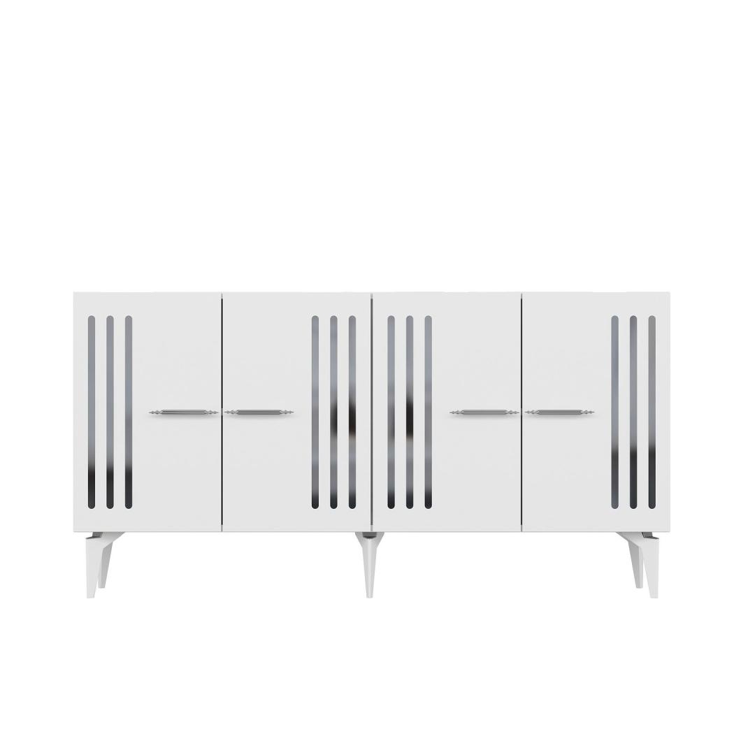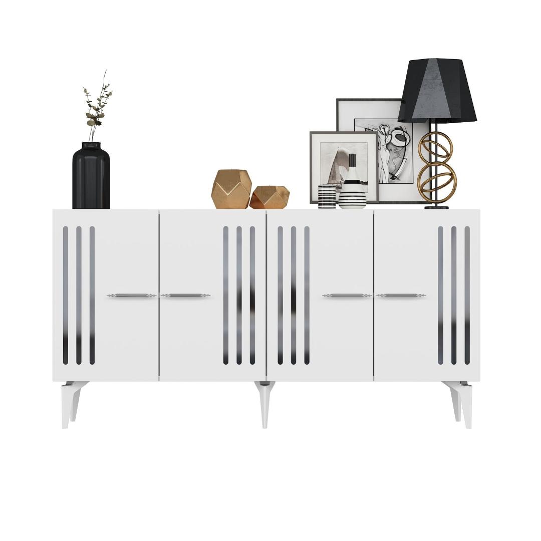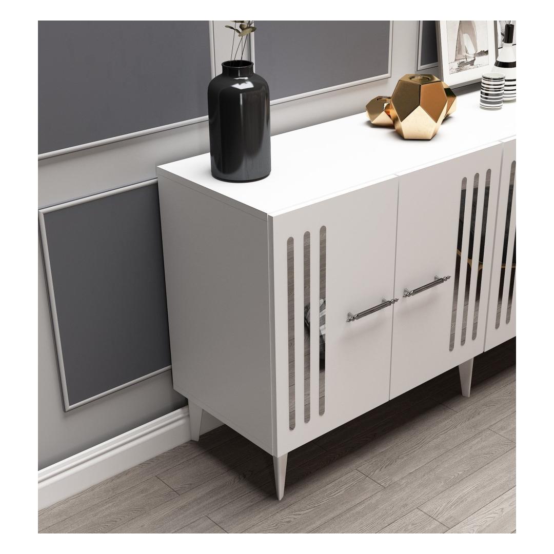 Muuda oma eluruum meie uimastava konsooliga, mis on valmistatud 100% melamiiniga kaetud puitlaastplaadist. See stiilne ja moodne ese lisab elegantsi igasse tuppa, pakkudes samal ajal piisavalt ruumi kõigile vajalikele asjadele. Tõstke oma kodu kaunistustHüvasti segadusega ja tere stiilile meie konsooliga, mis on loodud teie kodu esteetilisuse tõstmiseks. Valge ja hõbedane värvikombinatsioon lisab kaasaegset tooni, muutes selle ideaalseks täienduseks igasse moodsasse eluruumi. Funktsionaalne ja mitmekülgne150 cm laiuse ja arvukate riiulitega pakub see konsool rohkelt hoiuvõimalusi teie raamatute, dekoratsioonide ja muu jaoks. 18 mm paksus tagab vastupidavuse, samas kui võimalus kinnitada see seina külge lisab stabiilsust ja turvalisust. Tehnilised üksikasjad:Materjal: Materjal: Materjal: Materjal: Materjal: Materjal: Materjal: Materjal: materjal: 100% melamiiniga kaetud puitlaastplaatPaksus: 18 mmLaius: 150 cmKõrgus: 79 cmSügavus: 40 cmJala kõrgus: 19 cmRiiuli laius: 72 cmRiiuli kõrgus: 27 cmVärv: valge ja hõbedaneVõimalik kinnitada seina külge stabiilsuse lisamiseks Värv: White Silver