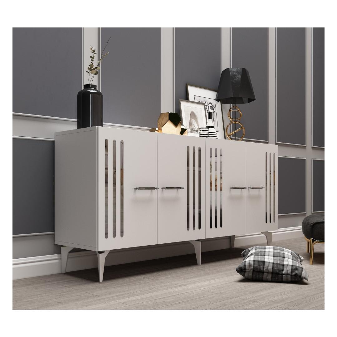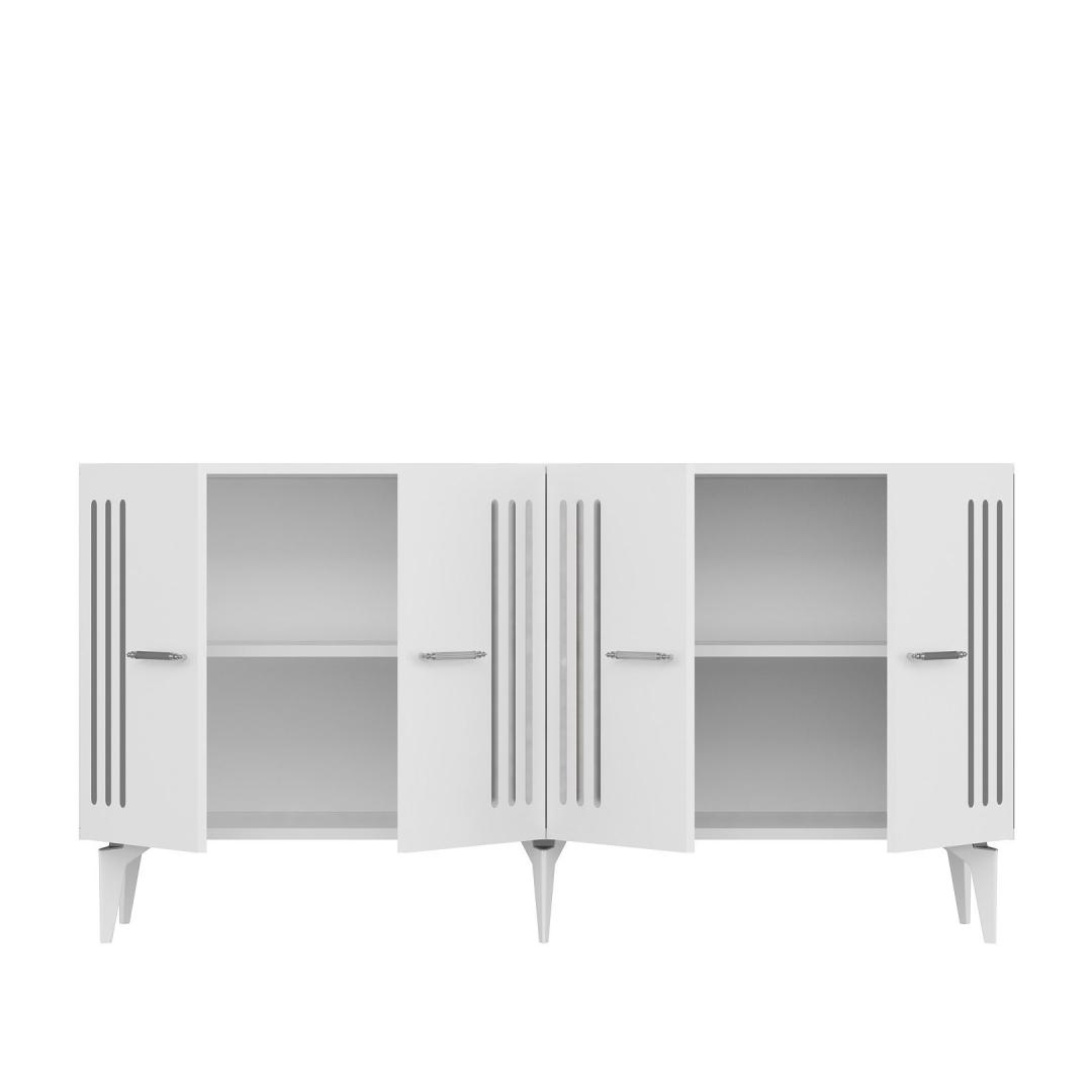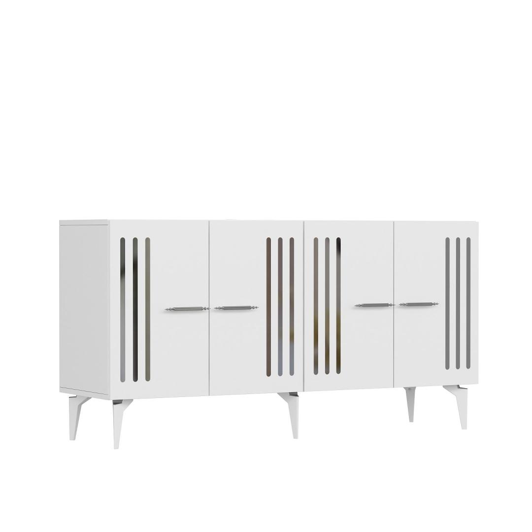 Muuda oma eluruum meie uimastava konsooliga, mis on valmistatud 100% melamiiniga kaetud puitlaastplaadist. See stiilne ja moodne ese lisab elegantsi igasse tuppa, pakkudes samal ajal piisavalt ruumi kõigile vajalikele asjadele. Tõstke oma kodu kaunistustHüvasti segadusega ja tere stiilile meie konsooliga, mis on loodud teie kodu esteetilisuse tõstmiseks. Valge ja hõbedane värvikombinatsioon lisab kaasaegset tooni, muutes selle ideaalseks täienduseks igasse moodsasse eluruumi. Funktsionaalne ja mitmekülgne150 cm laiuse ja arvukate riiulitega pakub see konsool rohkelt hoiuvõimalusi teie raamatute, dekoratsioonide ja muu jaoks. 18 mm paksus tagab vastupidavuse, samas kui võimalus kinnitada see seina külge lisab stabiilsust ja turvalisust. Tehnilised üksikasjad:Materjal: Materjal: Materjal: Materjal: Materjal: Materjal: Materjal: Materjal: materjal: 100% melamiiniga kaetud puitlaastplaatPaksus: 18 mmLaius: 150 cmKõrgus: 79 cmSügavus: 40 cmJala kõrgus: 19 cmRiiuli laius: 72 cmRiiuli kõrgus: 27 cmVärv: valge ja hõbedaneVõimalik kinnitada seina külge stabiilsuse lisamiseks Värv: White Silver