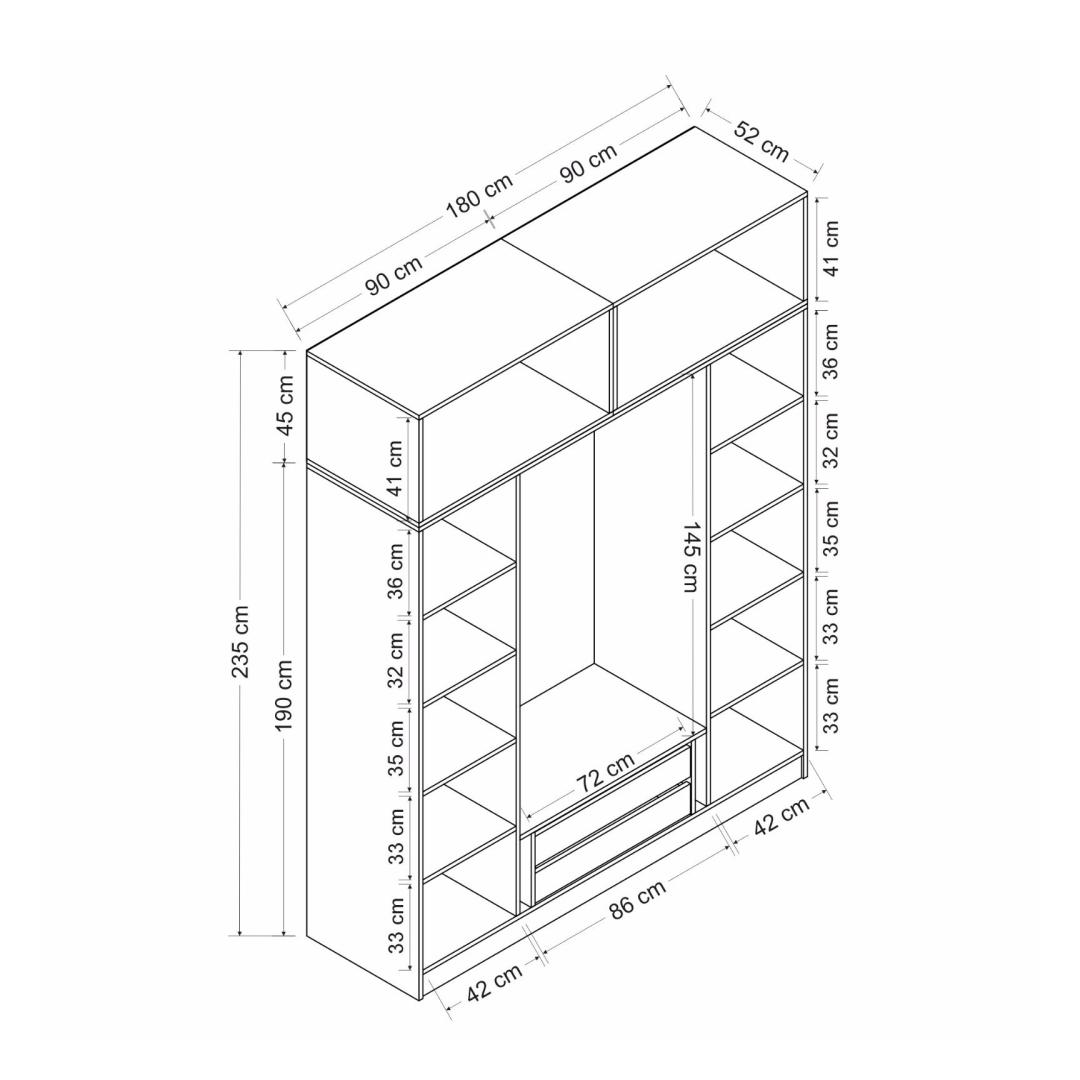 Width: 180 cm Height: 235 cm Depth: 52 cm