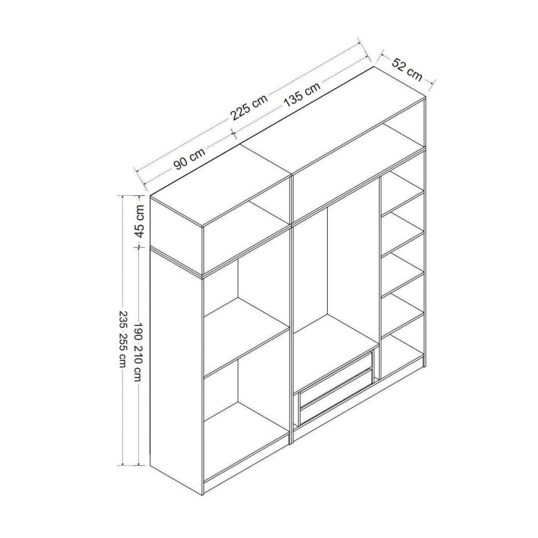 Width: 225 cm Height: 235 cm Depth: 52 cm
