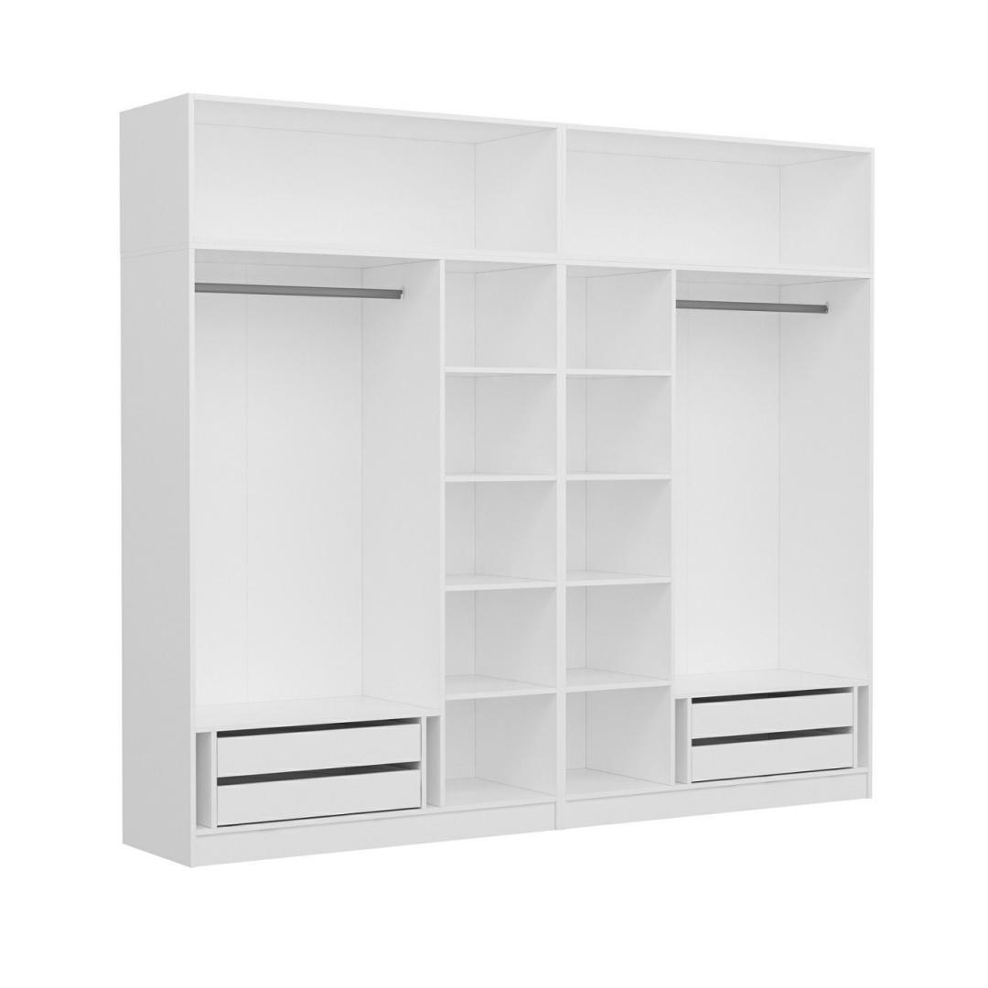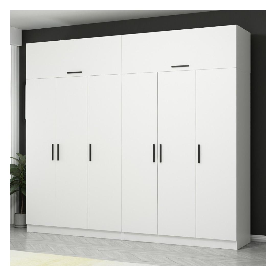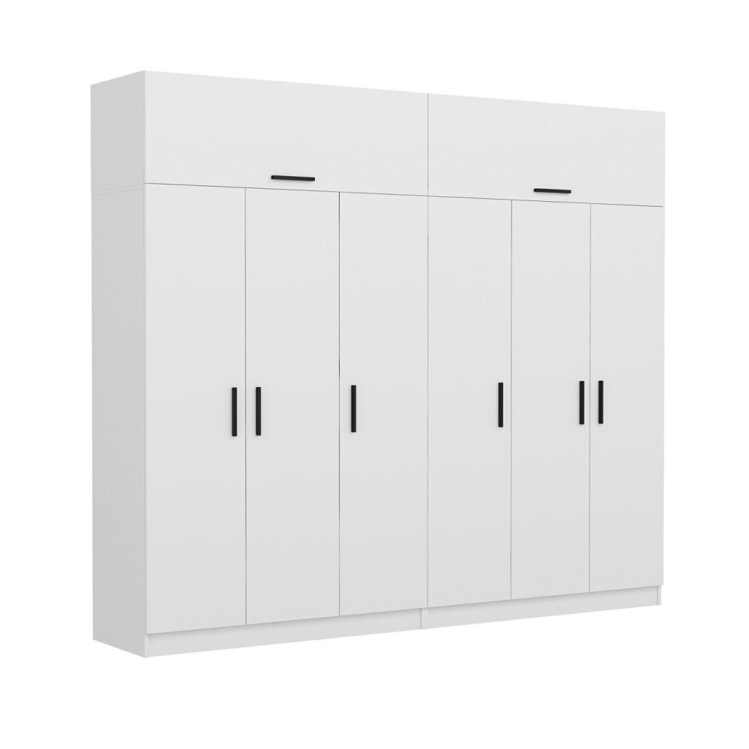 Meie garderoob, mis on loodud nii funktsionaalsust kui ka esteetikat silmas pidades, on tõeline meistriteos. Selle 100% melamiiniga kaetud puitlaastplaadi konstruktsioon tagab vastupidavuse ja pikaealisuse, samas kui valge värv lisab igasse ruumi elegantsi. Olenemata sellest, kas teil on modernne või traditsiooniline sisustus, see riidekapp sulandub sujuvalt, muutes selle ideaalseks täienduseks teie ruumile.