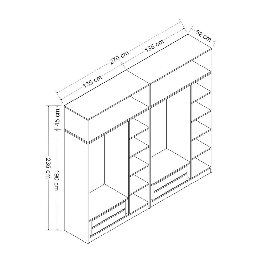 Width: 270 cm Height: 235 cm Depth: 52 cm