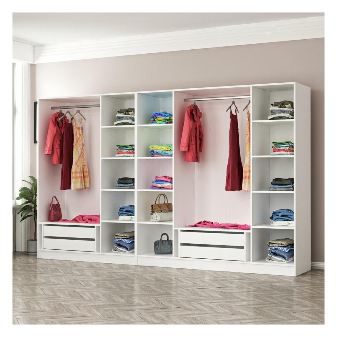 See riidekapp pakub tänu oma suursugustele mõõtmetele rohkesti hoiuruumi, et rahuldada kõiki teie vajadusi. 315 cm laius, 210 cm kõrgus ja 52 cm sügavus pakuvad piisavalt ruumi teie riietele, aksessuaaridele ja muule. Enam ei ole vaja ummistunud kappe või ülevoolavaid sahtleid - kõik leiab selles garderoobis oma koha.
