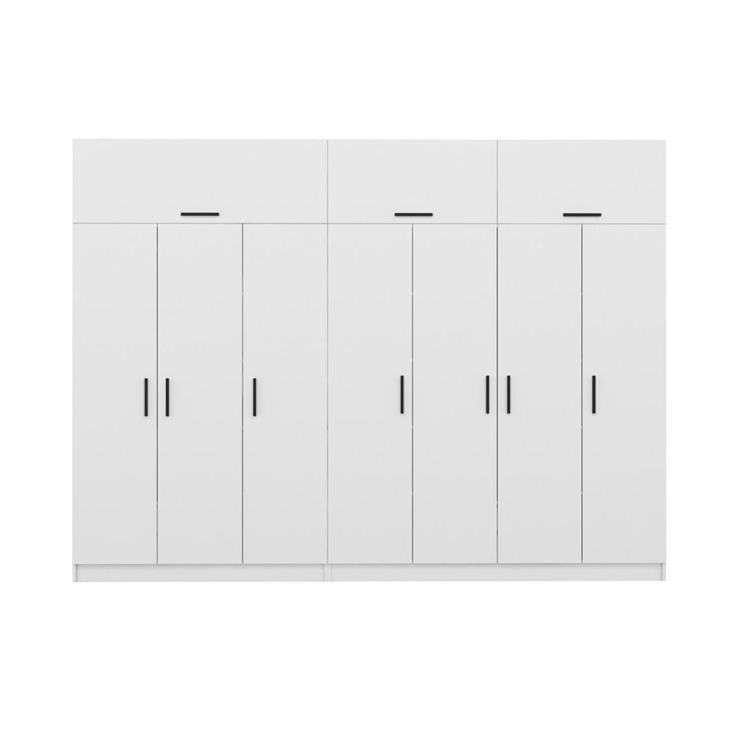 Kas olete väsinud rämpsukappidest ja korrastamata rõivastest? Öelge kaose ja tere organisatsiooniga meie uimastamise garderoobiga hüvasti! See garderoob on valmistatud 100% melamiiniga kaetud osakeste tahvlilt mitte ainult vastupidav, vaid ka stiilne. Muutke oma ruumi Kujutage ette, et kõnnite oma magamistuppa ja näete selles avaras riidekapist korralikult korraldatud riideid. Arvukate riiulite ja rohkete hoiuruumidega saate lõpuks olla määratud koht kõigi oma rõivaste ja aksessuaaride jaoks. klanitud ja moodne disain Selle garderoobi klanitud valge värv sulandub vaevata mis tahes sisekujunduse stiiliga, lisades teie ruumile elegantsi. Ükskõik, kas teil on kaasaegne või traditsiooniline esteetika, suurendab see riidekapp kindlasti teie ruumi ilme. Ehitatud kestma 18 mm paksuse osakeste tahvliga ehitatud riidekapp on ehitatud selleks, et taluda igapäevast kasutamist ja kestab aastaid. Võite usaldada, et see riidekapp mitte ainult ei vasta, vaid ületab teie ladustamisvajadusi. Tehnilised detailid:Materjal: 100% melamiiniga kaetud osakeste laud paksus: 18 mm laius: 315cm Kõrgus: 255cm sügavus: 52cm Värv: valge on arvukalt riiulid Stabiilsuse täiendamiseks saab seina külge kinnitada Värv: White