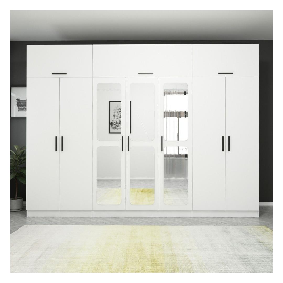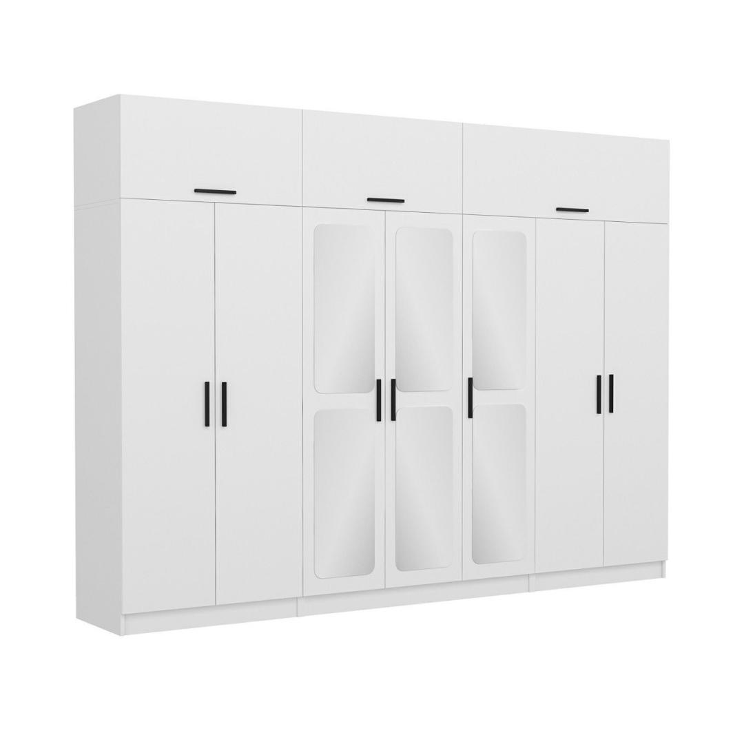 Kas olete väsinud segastest ja korrastamata kappidest? Öelge kaose ja tere organisatsiooniga meie uimastamise garderoobiga hüvasti! 100% melamiiniga kaetud osakeste tahvlilt valmistatud see riidekapp pole mitte ainult vastupidav, vaid ka stiilne, lisades igale ruumile elegantsi. Muutke oma ruumi Laiusega 315 cm, kõrgus 255 cm ja sügavusega 52 cm, pakub see riidekapp palju ruumi kõigi teie riided, kingad ja aksessuaarid. Arvukad riiulid pakuvad rohkesti ladustamisvõimalusi, hoides teie asjad kenasti ja korras. Lisaks saab garderoobi seina külge kinnitada stabiilsuse ja turvalisuse tagamiseks. tõsta oma stiil Selle riidekapi klanitud valge värv lisab igale ruumile kaasaegse puudutuse, täiendades mitmesuguseid sisekujundusi. Ükskõik, kas teil on minimalistlik esteetika või eelistate eklektilisemat ilmet, parandab see riidekapp kindlasti teie toa üldist kujundust. Tehnilised detailid:Materjal: 100% melamiiniga kaetud osakeste laud paksus: 18 mm laius: 315 cm Kõrgus: 255 cm sügavus: 52 cm Värv: valge Värv: White