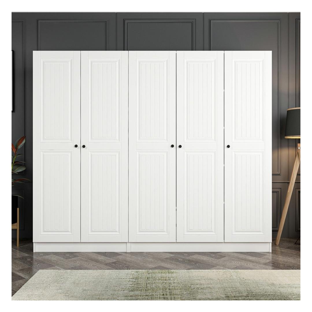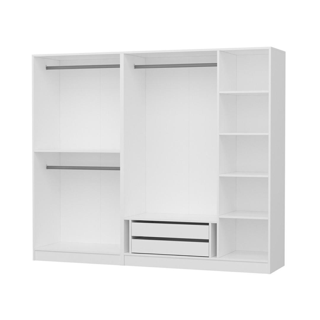 Meie ülima täpsusega valmistatud garderoobikapp on valmistatud 100% melamiiniga kaetud puitlaastplaadist. See kvaliteetne materjal tagab vastupidavuse ja pikaealisuse, mis teeb sellest targa investeeringu teie koju. Valge värvus lisab elegantset elegantsust, sobitudes vaevata iga sisustusstiiliga.