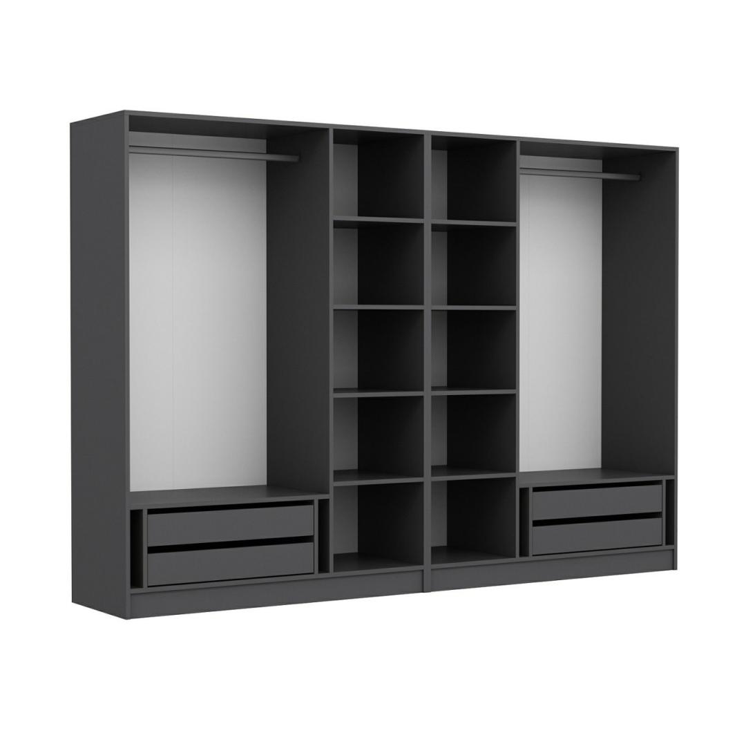 Suurejooneliste mõõtmetega (270 cm laius, 190 cm kõrgus ja 52 cm sügavus) pakub see garderoobikapp rohkelt ruumi riiete, aksessuaaride ja muu korraldamiseks. Arvukad riiulid pakuvad mitmekülgseid hoiuvõimalusi, mis võimaldavad teil oma asju kenasti paigutada ja hoida neid kergesti ligipääsetavana.