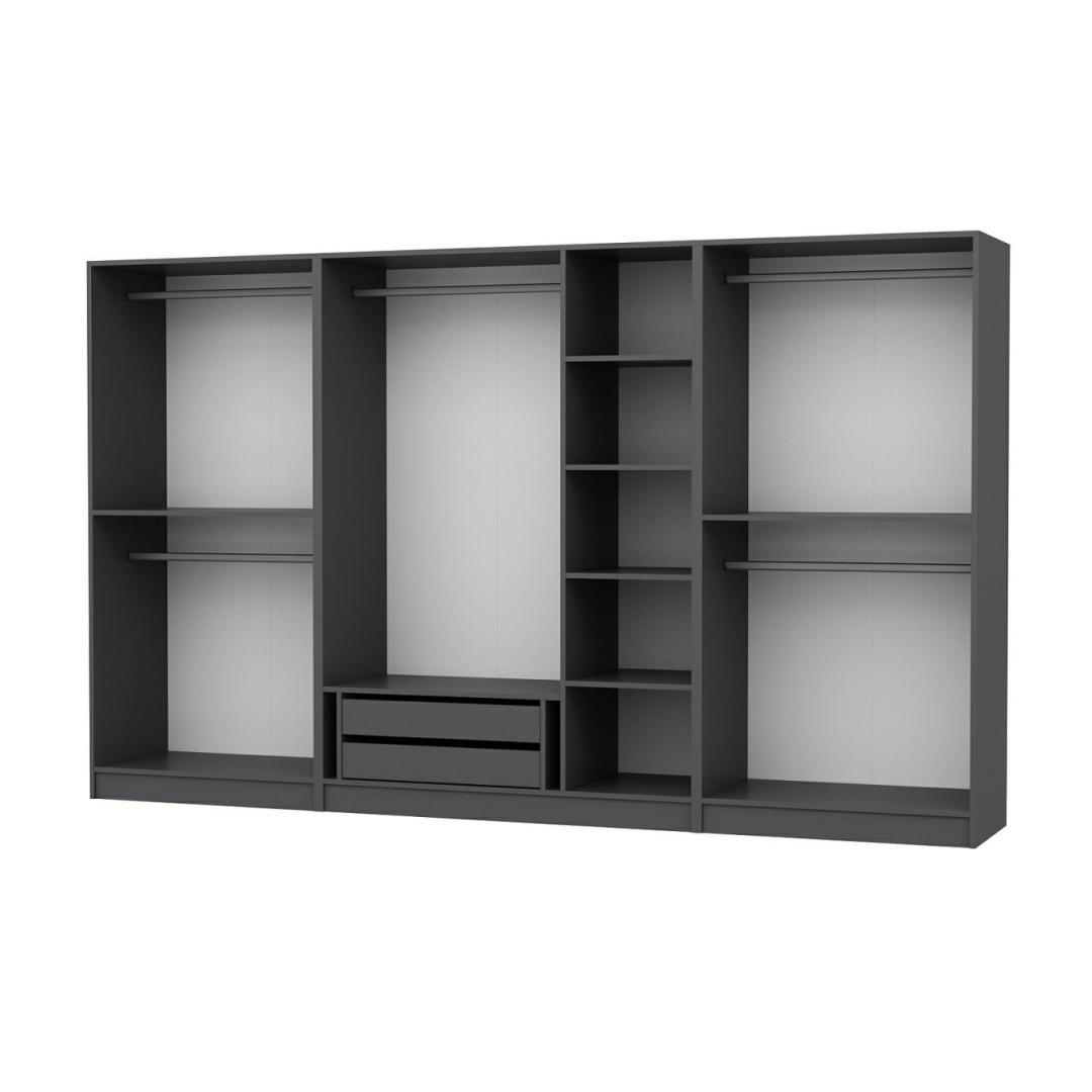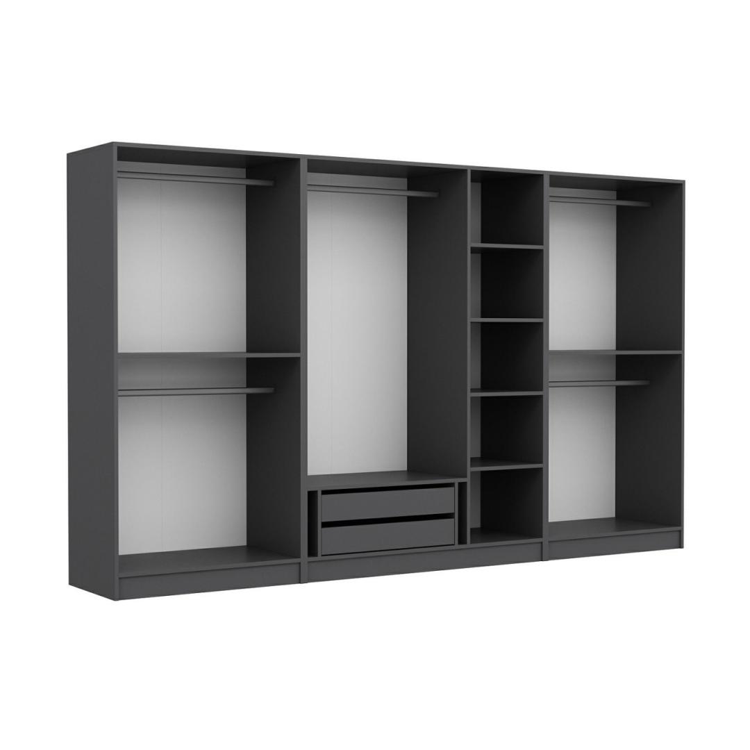 Garderoobil on elegantne ja kaasaegne disain, mille kaunis antratsiitne värvus lisab igasse ruumi elegantsust. Selle ajatu välimus tagab, et see sulandub sujuvalt mis tahes sisustusstiiliga, muutes selle mitmekülgseks valikuks teie magamistuppa.