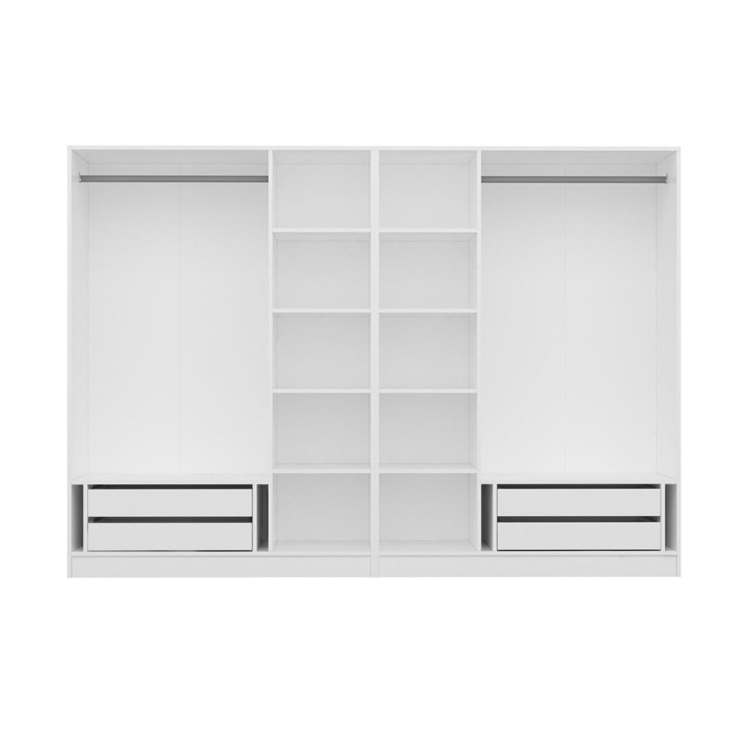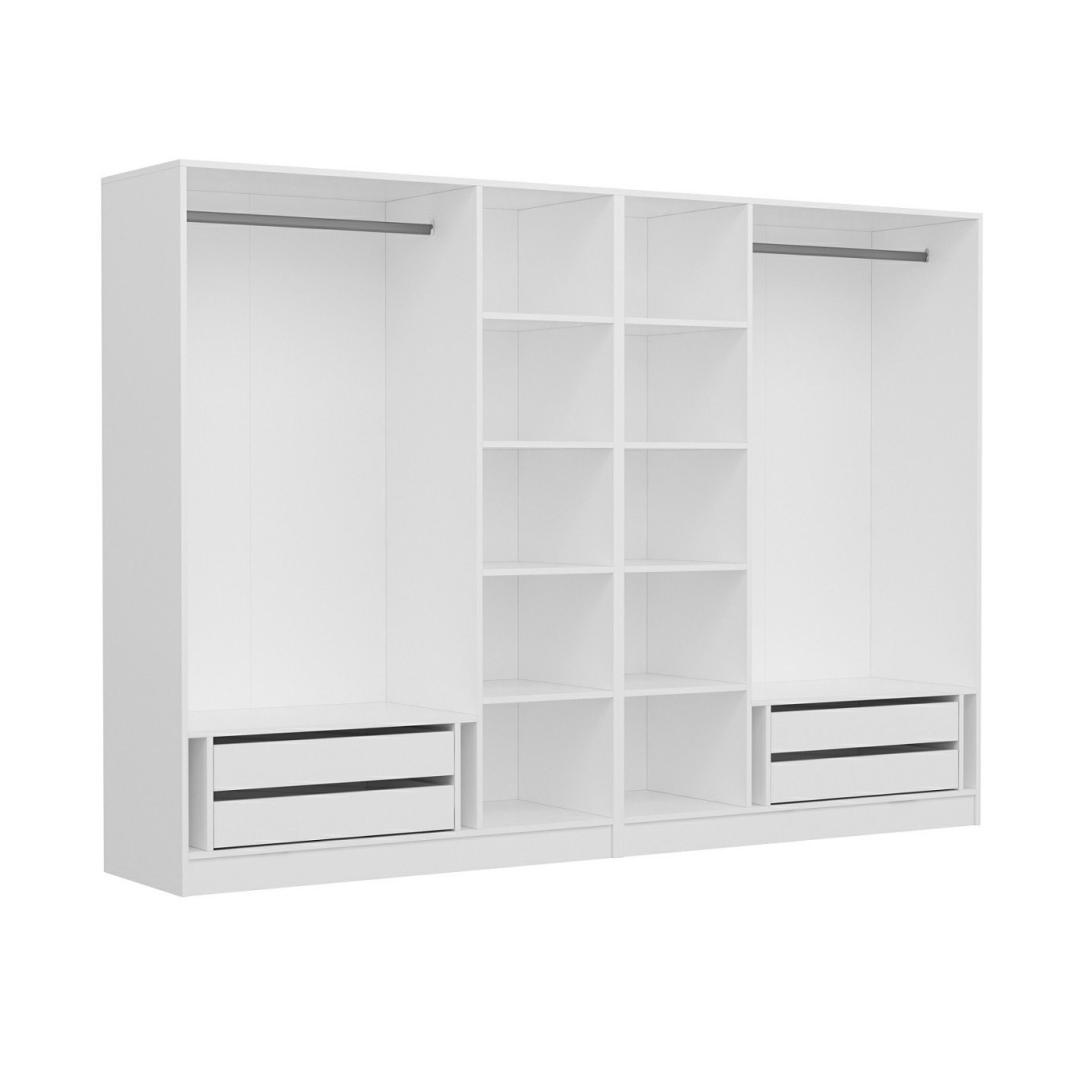 Garderoobil on uimastavalt valge värv, mis täiendab vaevata mis tahes magamistoa sisekujundust. Selle elegantne ja moodne disain lisab elegantsust, muutes teie magamistoa stiilseks pühapaigaks.