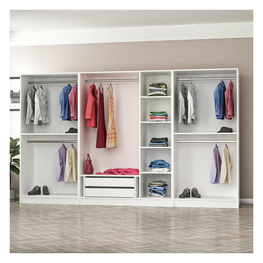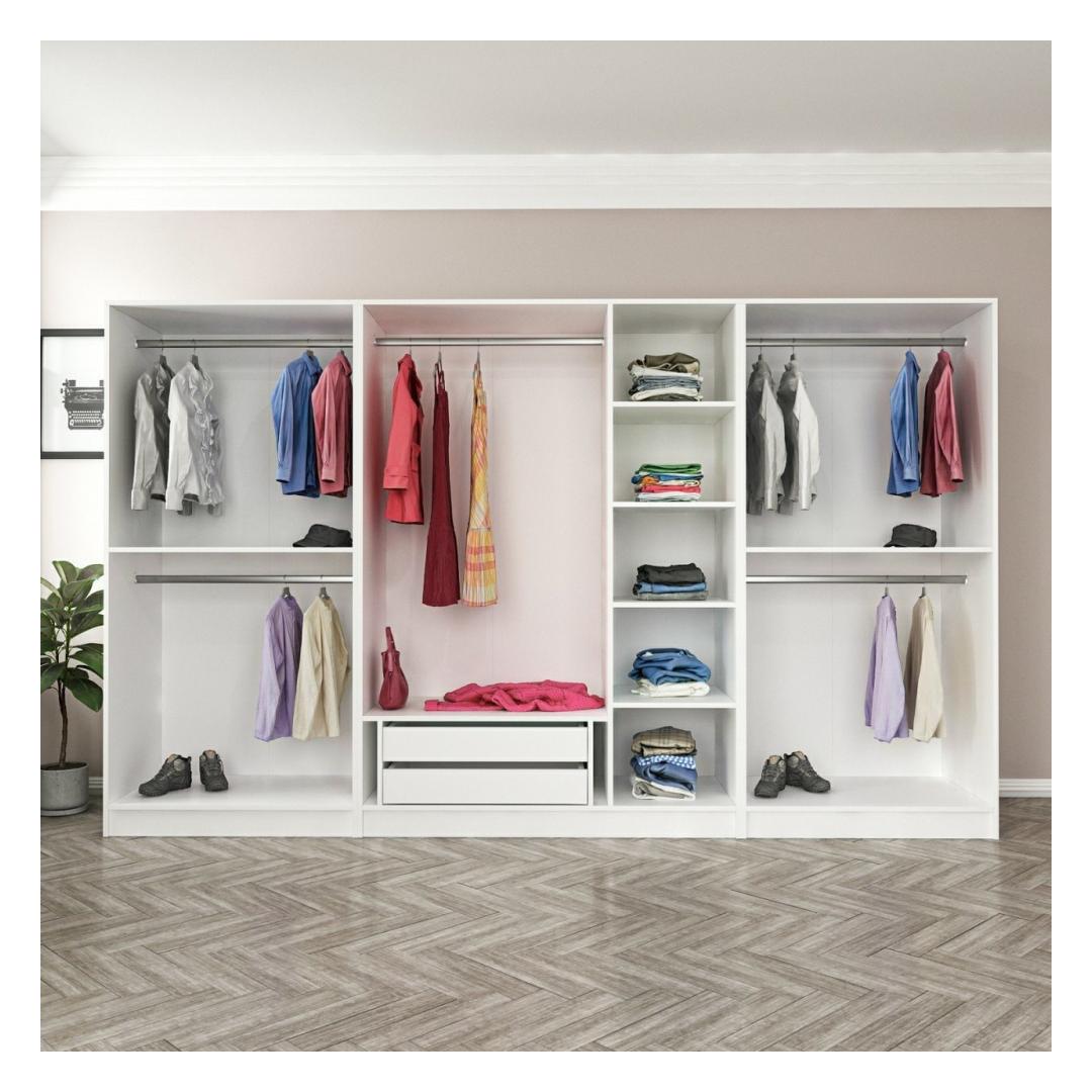 Arvukate riiulite ja rohke ruumiga riidekapp pakub teile vabadust korraldada oma asjad nii, et need sobiksid teie elustiiliga. Alates riietest ja aksessuaaridest kuni kingade ja kottideni on kõigel oma kindel koht. Ütle hüvasti räpastele hunnikutele ja tere segadustevabale pelgupaigale.