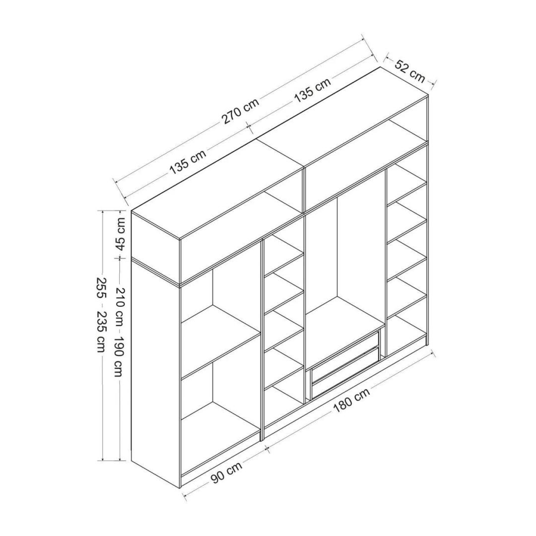 Width: 270 cm Height: 255 cm Depth: 52 cm