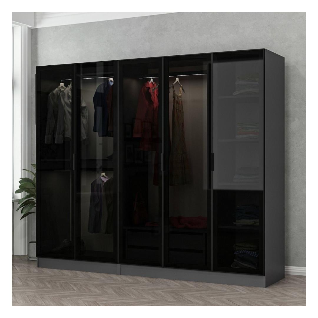 Transformeeri oma ruumi stiilse ja funktsionaalse garderoobigaKas olete väsinud segast ja korrastamata ruumist? uuendage oma kodu meie uimastava garderoobiga, mis ühendab endas stiili ja funktsionaalsuse, pakkudes teile täiuslikku hoiulahendust. Vabastage oma loovus lõputute hoiustamisvõimalustegaArvukate riiulite ja rohke ruumi abil võimaldab meie garderoobikapp teil oma asju vaevata korraldada. Ütle hüvasti segastele ruumidele ja tere hästi organiseeritud ja visuaalselt atraktiivsele ruumile. Olgu tegemist teie riiete, aksessuaaride või isegi raamatutega, meie garderoobikapp on teid katnud.Kõrgendage oma sisekujundust kaasaegse ja elegantse disainigaMeie elegantse disainiga riidekapp lisab elegantsi igasse ruumi. Antratsiidi ja musta värvi kombinatsioon loob silmatorkava kontrasti, mis täiendab mis tahes interjööri stiili. See ei ole lihtsalt mööblitükk; see on avaldus teie laitmatust maitsest. Kogege võrratut vastupidavust ja kvaliteetiMeie riidekapp on valmistatud 100% melamiiniga kaetud puitlaastplaadist, mis on ehitatud nii, et see peab vastu aja katsumusele. 18 mm paksus tagab tugevuse ja vastupidavuse, muutes selle teie koju pikaajaliseks investeeringuks. Tehnilised üksikasjad:Materjal: materjal: 100% melamiiniga kaetud puitlaastplaatPaksus: 18 mmLaius: 225 cmKõrgus: 210 cmSügavus: 52 cmVärv: Antratsiit ja mustArvukad riiulid tõhusaks organiseerimiseksUuendage oma eluruumi meie stiilse ja funktsionaalse riidekapiga. Kogege rõõmu segadusteta ja korrastatud kodust. Ärge leppige vähemaga, kui teil on võimalik saada nii stiili kui ka funktsionaalsust ühes. Uuendage oma kodu juba täna! Värv: Anthracite Black