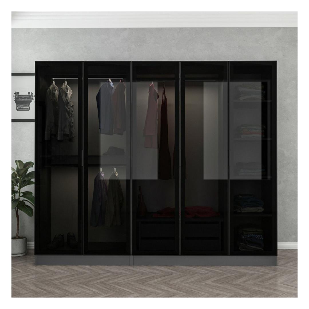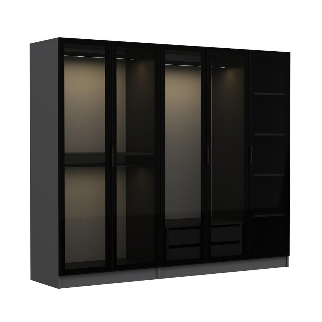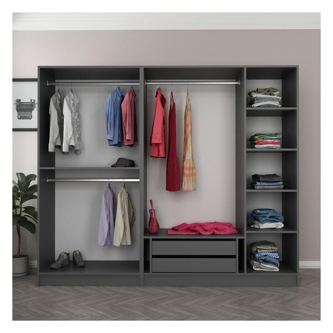 Meie elegantse ja moodsa disainiga garderoobikapp on ideaalne täiendus igale magamistoa sisustusele. Antratsiidi ja musta värvi kombinatsioon lisab elegantsust ja rafineeritust, muutes teie ruumi koheselt luksuslikuks puhkekohaks.