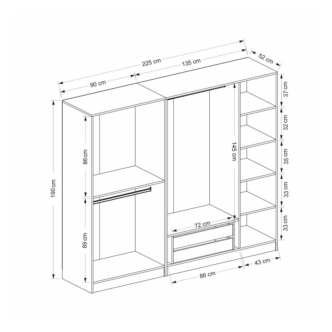 Width: 225 cm Height: 190 cm Depth: 52 cm