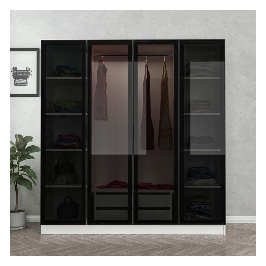 Valge ja musta värvi uimastava kombinatsiooniga riidekapp lisab igasse ruumi elegantsi. Olenemata sellest, kas teil on modernne või traditsiooniline interjöör, see riidekapp sulandub sujuvalt, suurendades teie ruumi üldist esteetilist atraktiivsust.