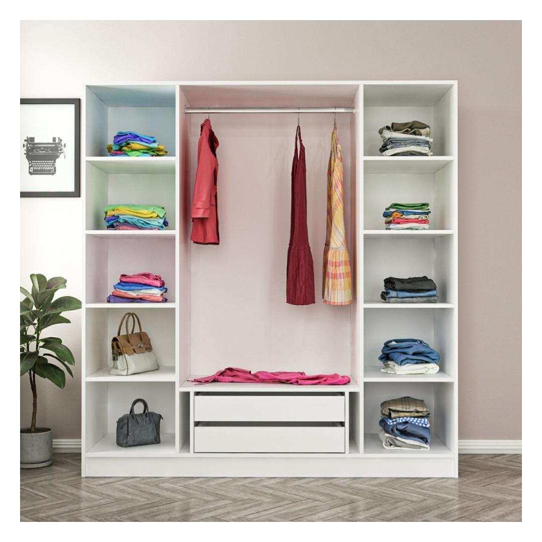 Tänu arvukatele riiulitele pakub see riidekapp lõputuid hoiustamisvõimalusi. Alates riietest ja kingadest kuni aksessuaarideni ja muuni, saate hoida kõike korralikult organiseeritult ja kergesti ligipääsetavana. Enam ei pea otsima läbi riidehunnikute või püüdma leida oma lemmikpaari kingi.