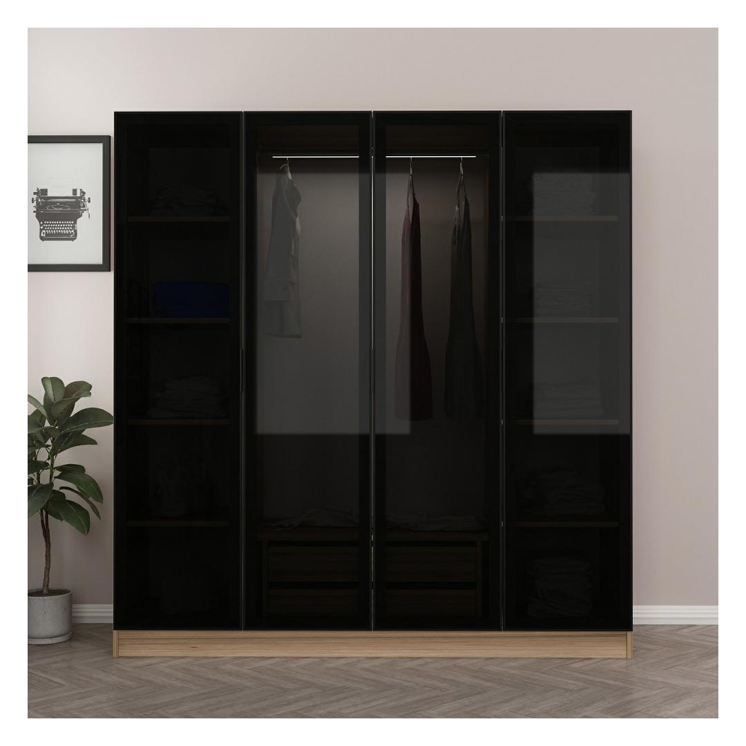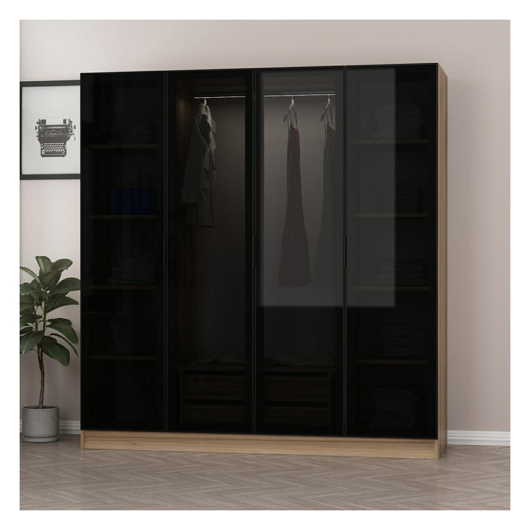 180 cm laiuse, 210 cm kõrguse ja 52 cm sügavusega pakub see riidekapp piisavalt ruumi, et hoida kõik oma riided, jalanõud ja aksessuaarid. Rohked riiulid pakuvad palju hoiustamisvõimalusi, et hoida sinu asjad korras ja puhtad.
