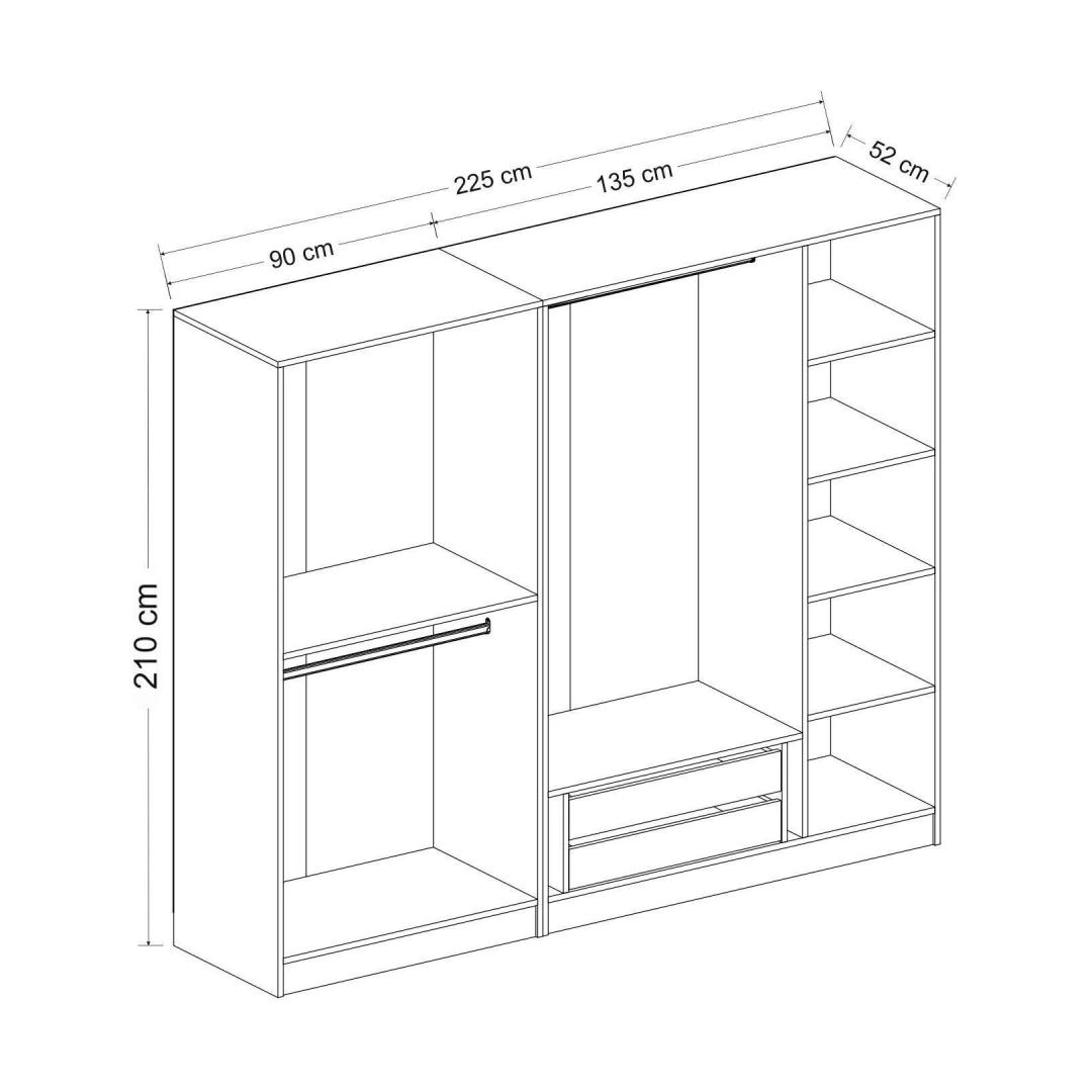 Width: 225 cm Height: 210 cm Depth: 52 cm