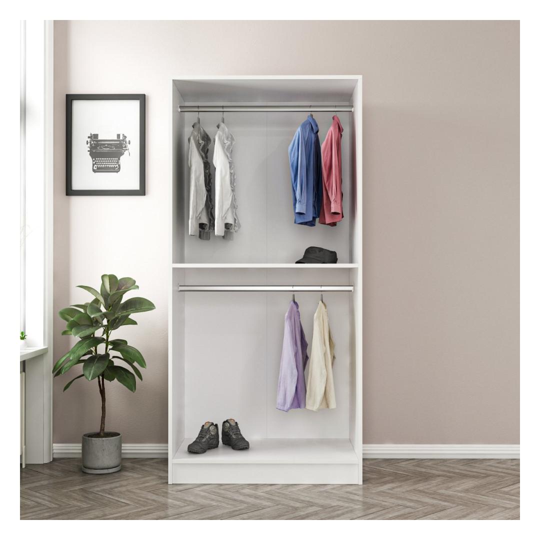 Tutvustame meie suurepärast ja mitmekülgset garderoobikappi, mis on täiuslik täiendus teie kodule, mis toob teie ruumi nii funktsionaalsust kui ka elegantsust. Vabastage lihtsuse iluOma puhaste joonte ja minimalistliku disainiga sulandub see garderoobikapp vaevata mis tahes interjööri stiiliga, luues rahulikku ja kutsuvat atmosfääri. Puhas valge värvus lisab elegantsi, muutes selle ajatu esemeks, mis ei lähe kunagi moest välja.Kvaliteetne käsitöö, kestev vastupidavusSee 100% melamiiniga kaetud puitlaastplaadist valmistatud riidekapp on ehitatud nii, et see peab vastu. 18 mm paksus tagab tugevuse ja stabiilsuse, pakkudes teile usaldusväärset hoiulahendust aastateks. Rikkalik panipaik, organiseeritud eluÜtle meie ruumika garderoobiga hüvasti segadusele ja tere korraldusele. Suurepärane 90 cm laius võimaldab hõlpsasti hoiustada kogu teie garderoobikollektsiooni, samas kui 190 cm kõrgus ja 52 cm sügavus pakuvad piisavalt ruumi riiete riputamiseks, volditud riiete ja aksessuaaride jaoks. Muutke oma ruumi, muutke oma eluKogege rõõmu hästi organiseeritud ja visuaalselt meeldivast ruumist. Meie garderoobikapp ei paku mitte ainult praktilisi hoiulahendusi, vaid parandab ka teie ruumi üldist esteetikat. Looge pühapaik, kus saate lõõgastuda ja lõõgastuda, ümbritsetuna lihtsuse ilust. Tehnilised üksikasjad:Materjal: Materjal: Materjal: Materjal: Materjal: Materjal: Materjal: Materjal: materjal: 100% melamiiniga kaetud puitlaastplaatPaksus: 18 mmLaius: 90 cmKõrgus: 190 cmSügavus: 52 cmVärv: valge Värv: White