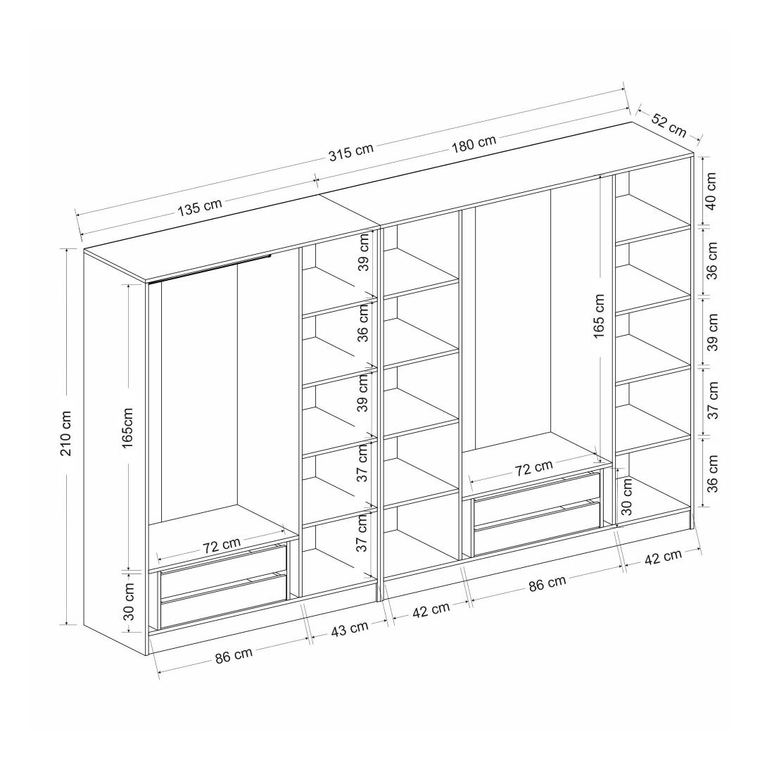 Width: 315 cm Height: 210 cm Depth: 52 cm