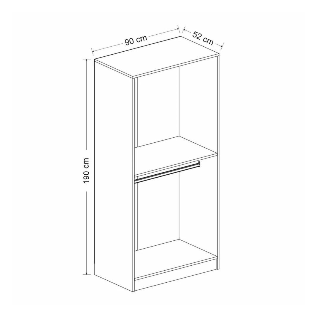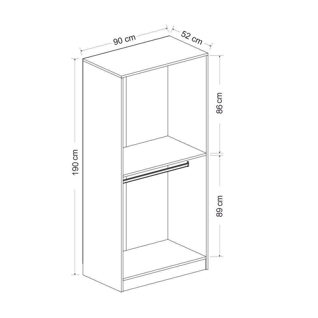 Ütle hüvasti segastele tubadele ja tere korraldatud õndsusele! see riidekapp pakub oma suurepäraste mõõtmetega (90 cm laius, 190 cm kõrgus ja 52 cm sügavus) piisavalt ruumi kõigi sinu asjade hoidmiseks. Alates riietest ja aksessuaaridest kuni kingade ja kottideni leiab kõik oma õige koha selles avaras garderoobis.