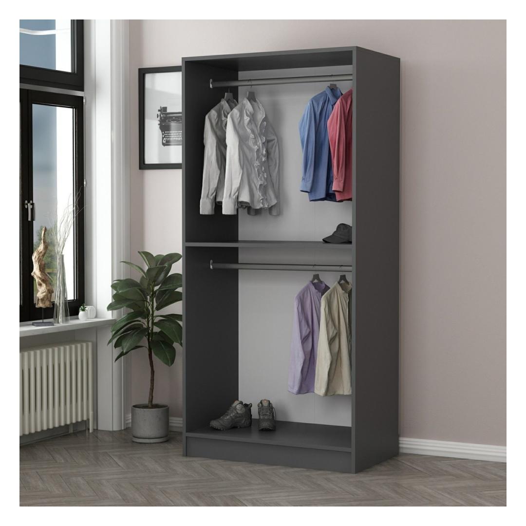 Kas olete väsinud segast ja korrastamata magamistoast? ärge vaadake enam edasi! tutvustame meie uimastavat garderoobikappi, mis on loodud selleks, et tuua teie ruumi elegantsust ja organiseeritust. Oma elegantsete mustade ja antratsiidi värvidega parandab see garderoobikapp vaevata iga ruumi esteetikat.