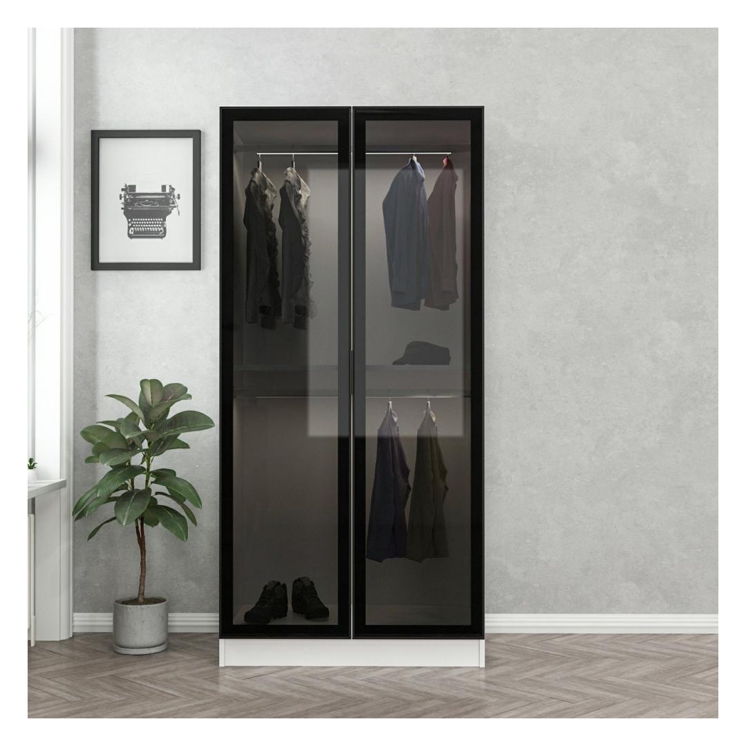 Garderoobis on mustade ja valgete värvide kütkestav kombinatsioon, mis loob visuaalselt silmatorkava eseme, mis tõstab koheselt teie magamistoa esteetikat. Kontrastsed värvid lisavad kaasaegset rafineeritust, mistõttu sobib see ideaalselt igasse kaasaegsesse sisekujundusse.