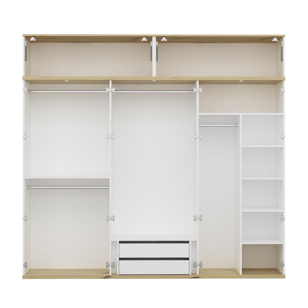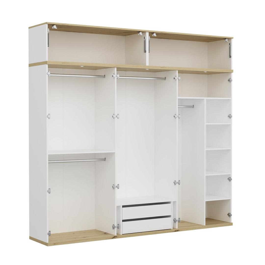 See riidekapp pole mitte ainult praktiline, vaid ka esteetiliselt meeldiv. Valge värv lisab igale ruumile pisut keerukust, samas kui arvukad riiulid pakuvad palju ladustamisvõimalusi. Ükskõik, kas vajate ruumi riiete või riiulite jaoks volditud esemete jaoks, on see riidekapp katnud.