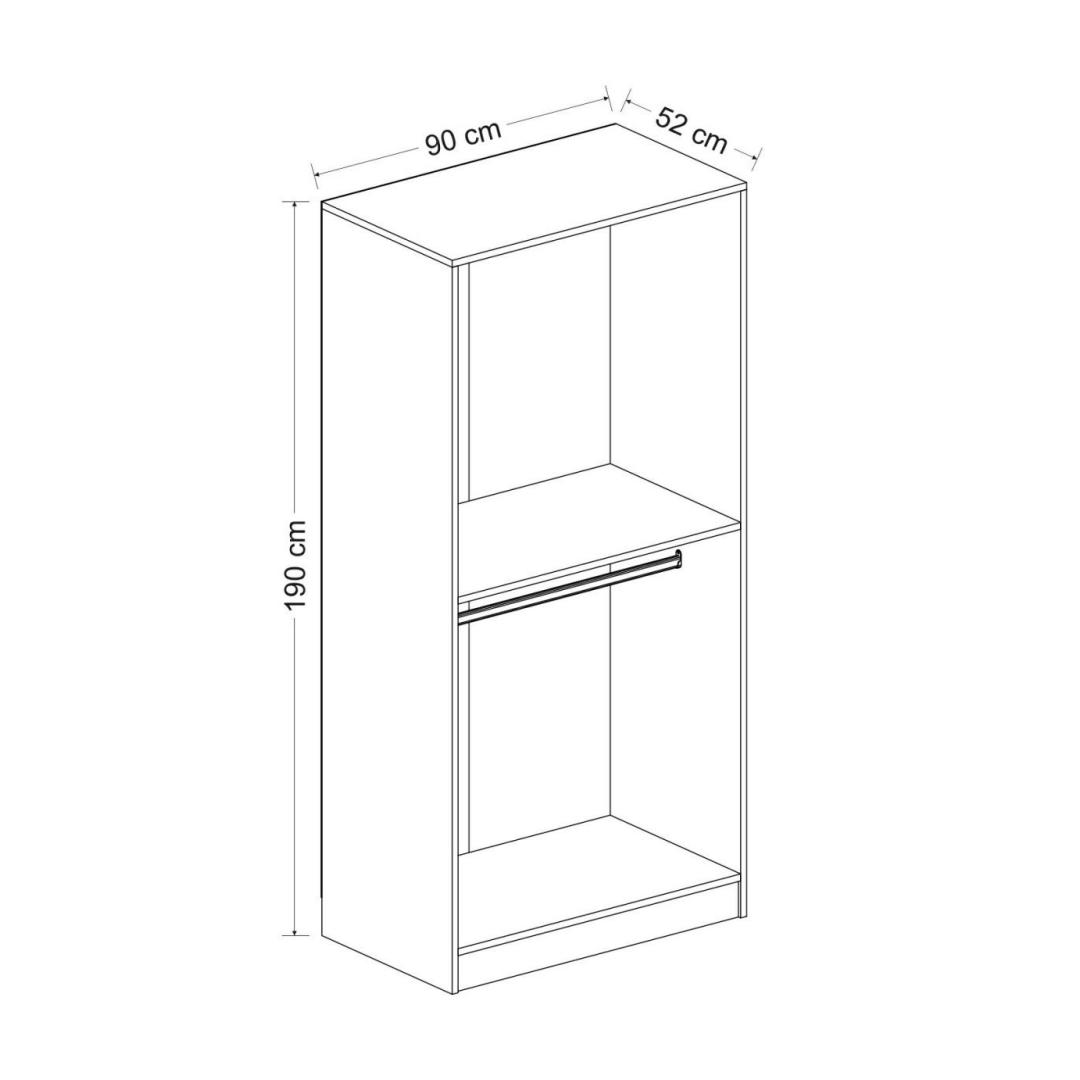 Suurepärase 90 cm laiuse, 210 cm kõrguse ja 52 cm sügavusega riidekapp pakub piisavalt ruumi kõigi teie asjade hoidmiseks. Alates riietest ja aksessuaaridest kuni voodipesu ja kingadeni leiab kõik oma koha selles riidekapis, tagades korrastatud ja korrastatud eluruumi.