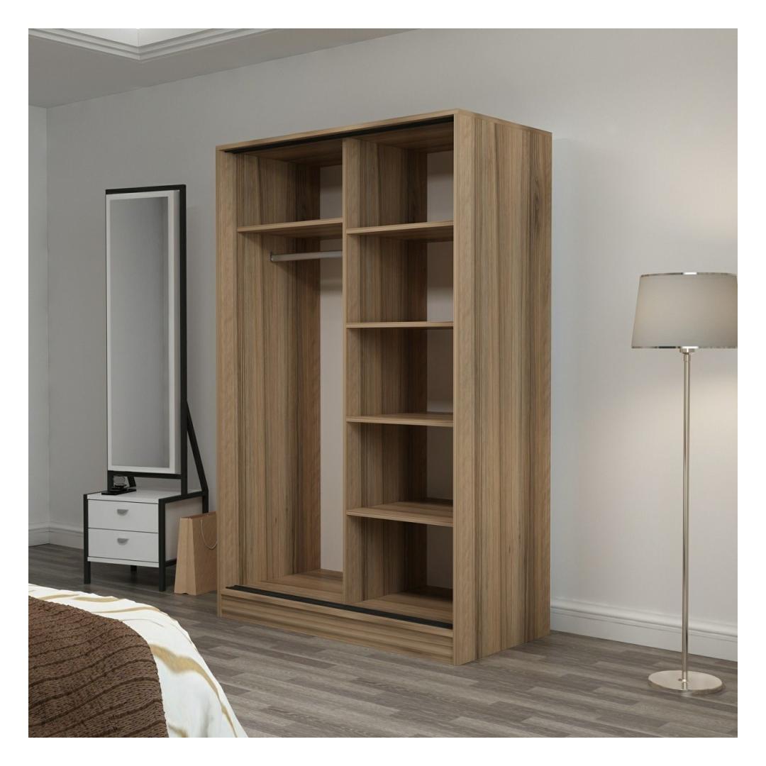 Muuda oma magamistuba meie suurepärase garderoobiga korralduse ja stiili paradiisiks. See ülima täpsusega valmistatud riidekapp on loodud vastama kõigile teie hoiuvajadustele, lisades samas teie ruumile elegantsi.