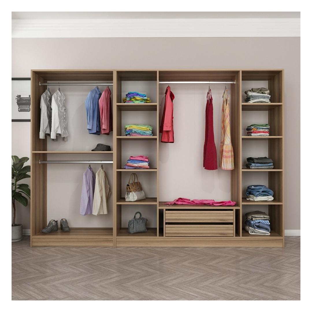 Suurepäraste mõõtmetega (270 cm laius, 210 cm kõrgus ja 52 cm sügavus) pakub see riidekapp rohkelt ruumi, et korrastada oma riideid, aksessuaare ja muud. Arvukad riiulid pakuvad mitmekülgseid hoiuvõimalusi, mis võimaldavad teil oma asju hõlpsasti leida ja kätte saada, millal iganes te neid vajate.