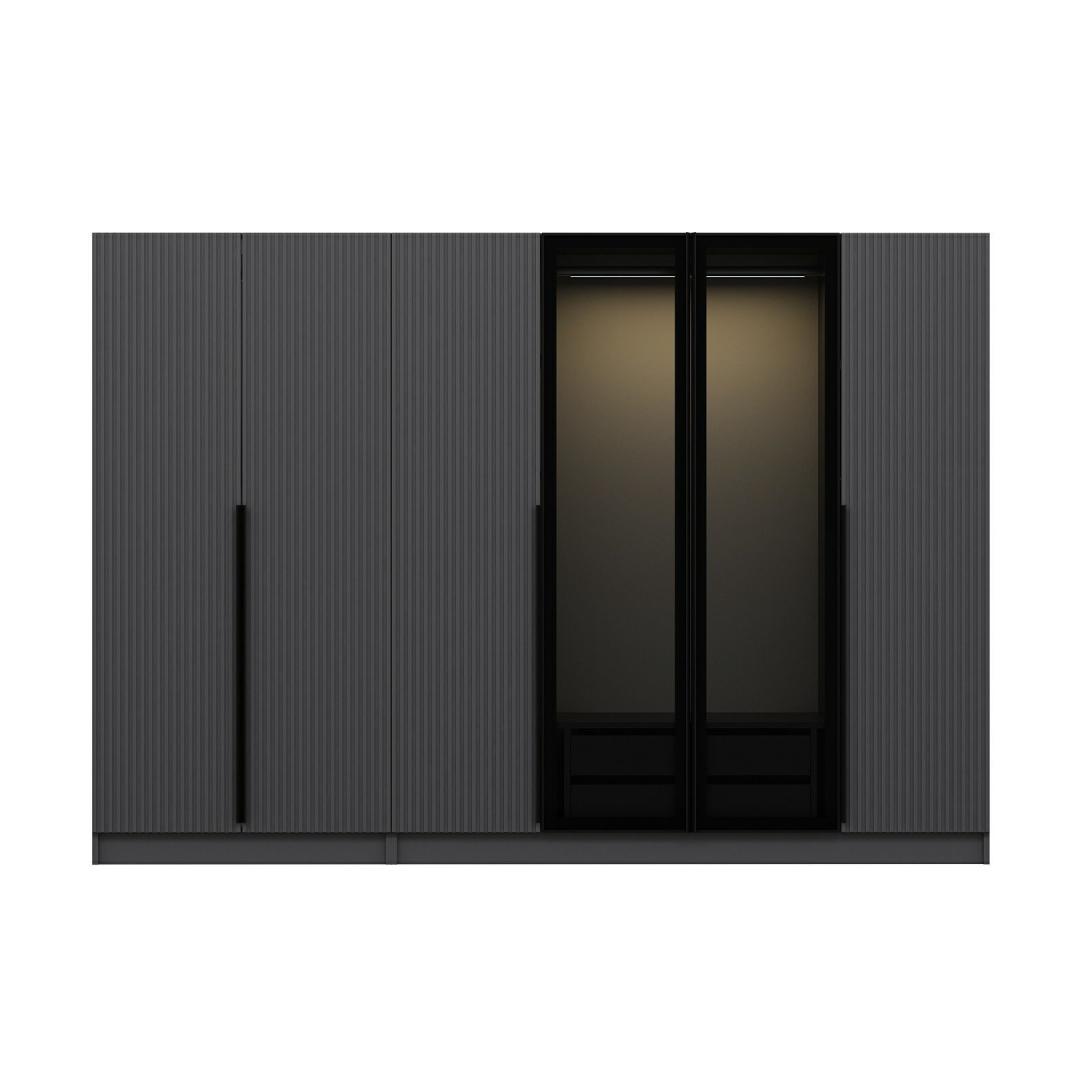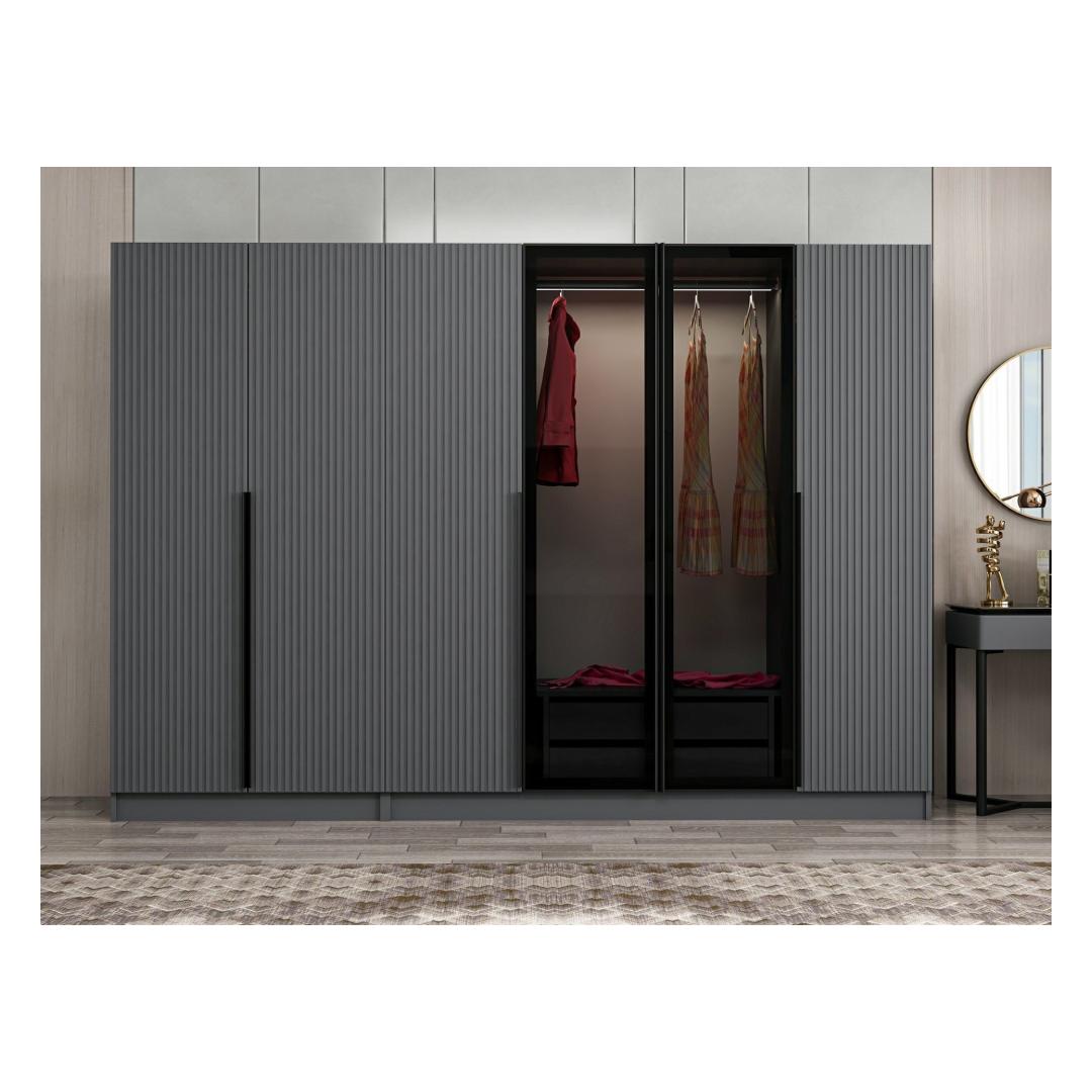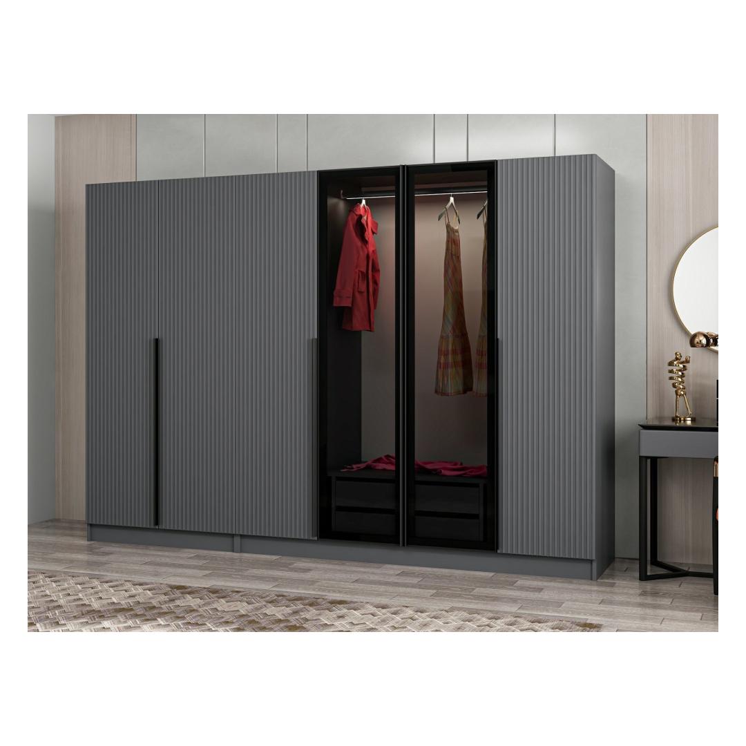 Kas oled väsinud segadusest kappides ja üle voolavatest sahtlitest? Ütle hüvasti korralagedusele ja tere tulemast meie kauni riidekapiga, mis on ideaalne lahendus hoiustamiseks. See kapp on valmistatud 100% melamiinkattega puitlaastplaadist, mis on mitte ainult vastupidav, vaid ka äärmiselt stiilne.Korralda oma ruum270 cm laiuse, 210 cm kõrguse ja 52 cm sügavusega kapp pakub piisavalt ruumi, et hoida kõik oma riided, jalanõud ja aksessuaarid. Rohked riiulid pakuvad palju ruumi sinu asjadele, aidates hoida kõik korras ja puhtana.Lihtne ja kaasaegne disainKapp on varustatud elegantse disainiga antratsiidi ja tumeda halli värviga, lisades igasse ruumi elegantsi. Ükskõik, kas sul on kaasaegne või traditsiooniline sisustus, see kapp täiendab sinu stiili ideaalselt.Muuda oma tubaMuuda oma magamistuba või riietumisala selle kauni kapiga. See mitte ainult ei paku praktilisi hoiustamislahendusi, vaid ka täiustab sinu ruumi üldilmet. Ütle hüvasti segadusele ja tere stiilsele ja korraldatud ruumile.Tehnilised andmed:Materjal: 100% melamiinkattega puitlaastplaatPaksus: 18 mmLaius: 270 cmKõrgus: 210 cmSügavus: 52 cmVärv: Antratsiit ja tumehall Värv: Anthracite Dark Grey