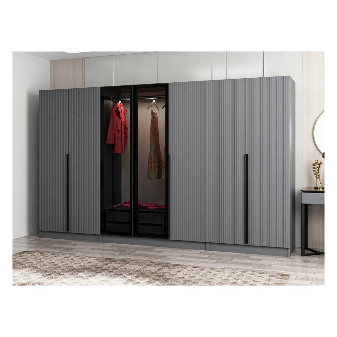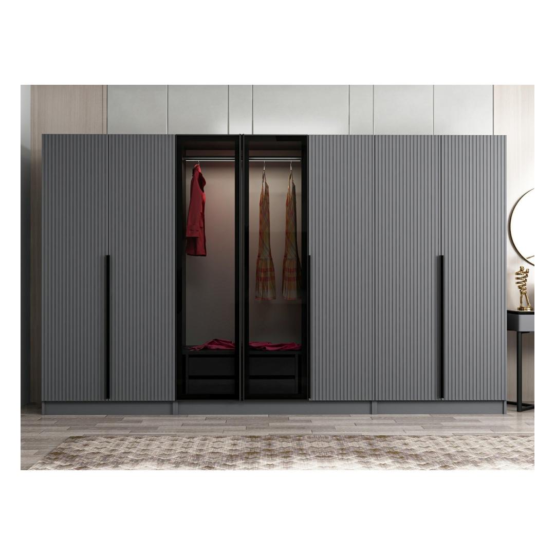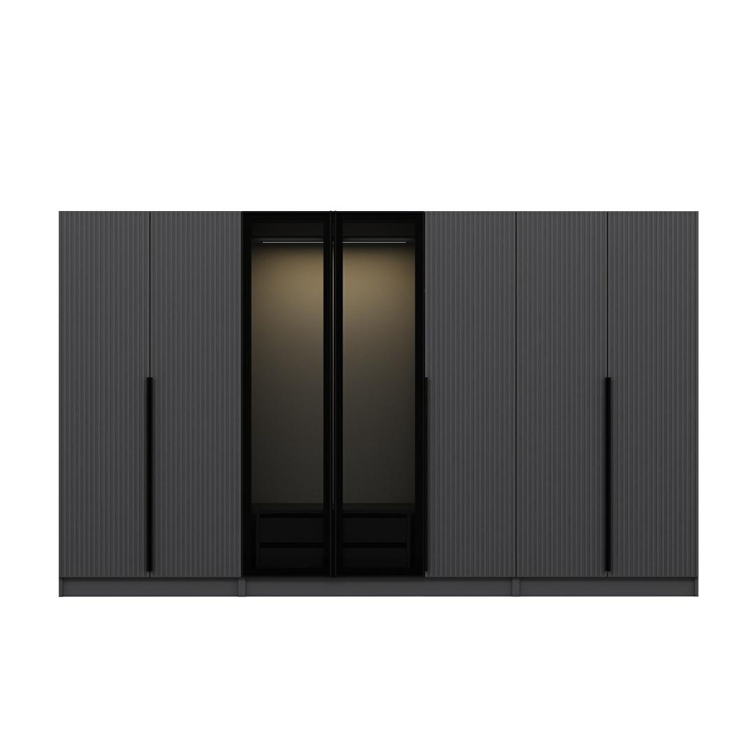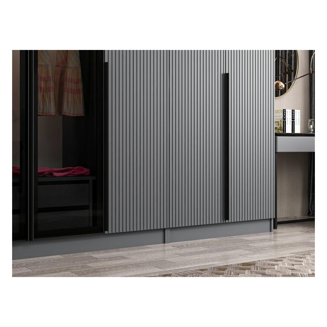 Kas oled väsinud segadusest kappides ja korraldamata riietest? Ütle hüvasti kaosale ja tere korraldusele meie kauni garderoobiga! Valmistatud 100% melamiinkattega puitlaastplaadist, on see garderoob mitte ainult vastupidav, vaid ka stiilne, lisades igasse ruumi elegantsi.Muuda oma ruumLaia 315 cm, kõrgusega 210 cm ja sügavusega 52 cm, pakub see garderoob piisavalt hoiuruumi kõigi sinu riiete ja aksessuaaride jaoks. Rohked riiulid pakuvad palju ruumi sinu esemete organiseerimiseks, muutes nende leidmise lihtsaks, kui neid vajad.Lihtne ja kaasaegne disainGarderoobil on stiilne disain antratsiidi ja tumeda halli värviga, lisades sinu ruumile kaasaegse puudutuse. Olenemata sellest, kas sul on kaasaegne või traditsiooniline sisustus, sulandub see garderoob sujuvalt sisse ja täiustab ruumi üldist esteetikat.Tehnilised andmed:Materjal: 100% melamiinkattega puitlaastplaatPaksus: 18 mmLaidus: 315 cmKõrgus: 210 cmSügavus: 52 cmVärv: Antratsiit ja tumehallÄra lase segadusel enam sinu ruumi üle võtta. Investeeri meie garderoobi ja koge korralikult organiseeritud ja visuaalselt meeldiva ruumi rõõmu. Tellige oma täna ja öelge tere segadusvabale elule! Värv: Anthracite Dark Grey