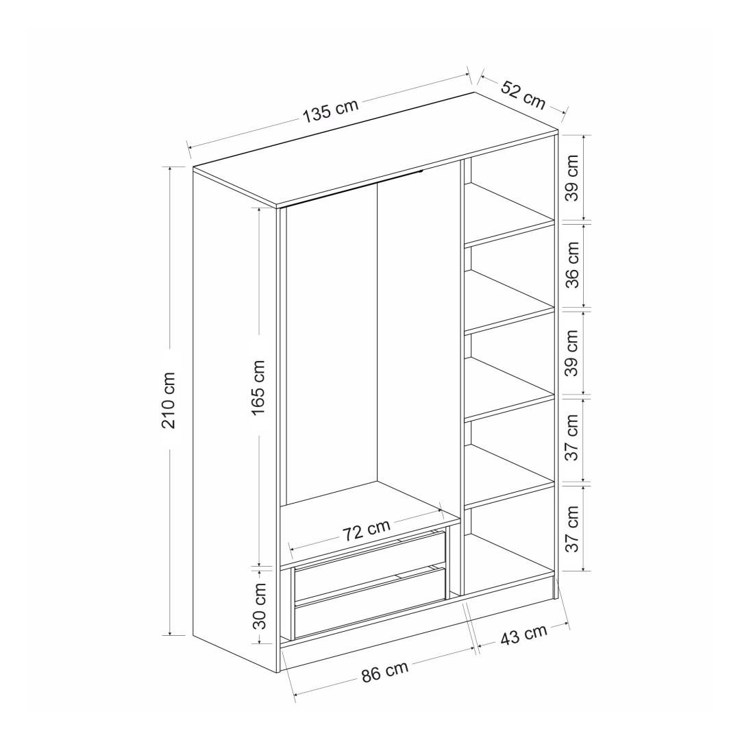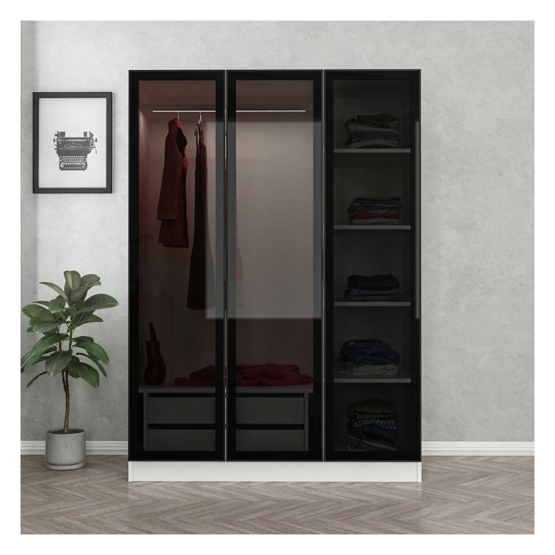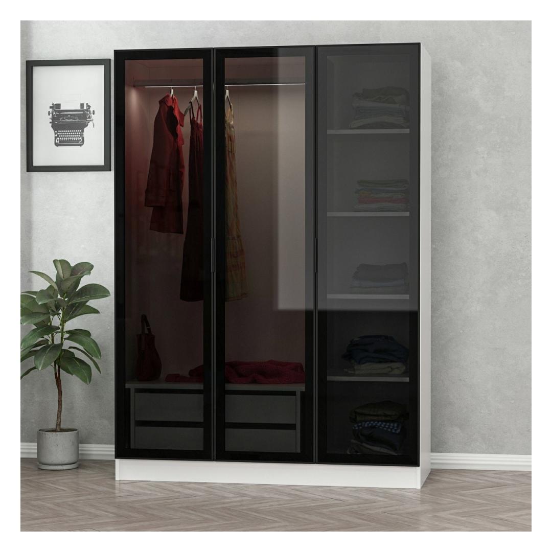 See ülima täpsusega valmistatud garderoobikapp on ajatu disainiga, mis sobitub vaevata iga sisekujundusega. Valge ja musta värvi kombinatsioon lisab teie magamistuppa elegantsi ja rafineeritust, muutes selle tõeliseks väljapaistvaks esemeks.