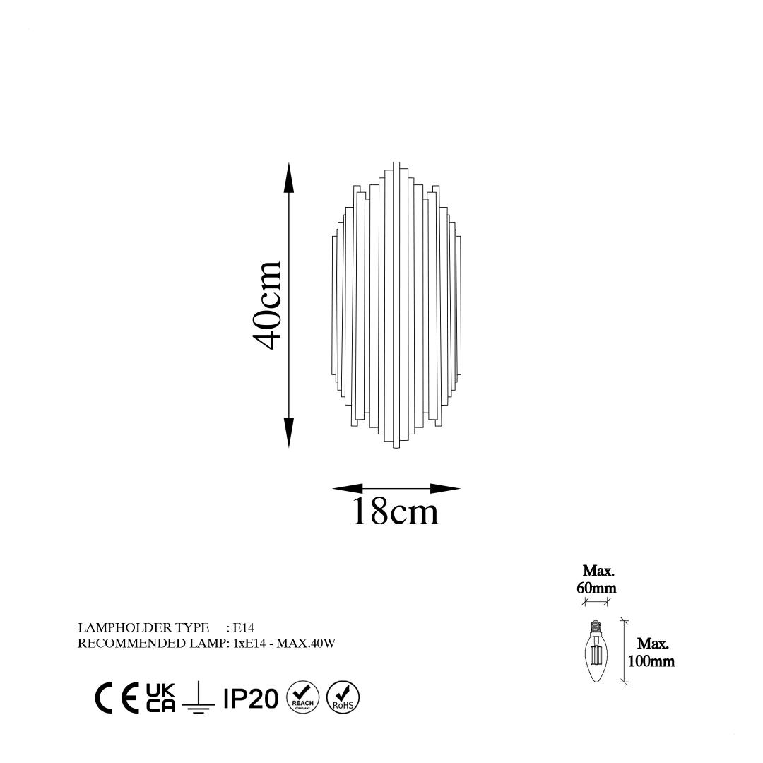 Socket Type: 1 x E 14 Max 40 W