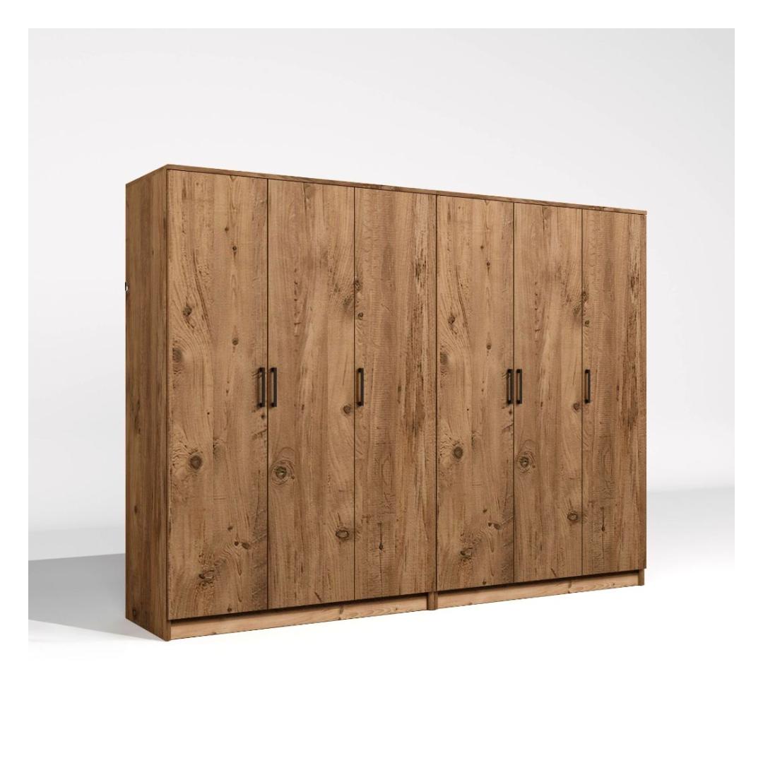 Kas oled väsinud segadusest täis kappidest ja üle voolavatest sahtlitest? Ütle hüvasti kaosale ja tere korraldusele meie kauni Atlandi mändi riidekapiga. See riidekapp ei ole lihtsalt mööbliese, vaid lahendus sinu ladustamisprobleemidele.Muuda oma ruumiKujuta ette, et astud oma magamistuppa ja näed, et kõik on korralikult organiseeritud selles kaunis riidekapis. Sellel on piisavalt riiuleid ja avar disain, et sul oleks palju ruumi kõigi oma riiete, kingade ja aksessuaaride jaoks. Ei mingit kaevamist riidehunnikute seas, et leida seda, mida vajad - kõik leiab oma koha selles riidekapis.Tõsta oma stiiliSee riidekapp ei ole mitte ainult funktsionaalne, vaid ka äärmiselt stiilne. Atlandi mändi värv lisab igale ruumile elegantsi, samas kui sujuv disain sobib igasuguse sisustuse stiiliga. Olenemata sellest, kas sul on kaasaegne või traditsiooniline esteetika, sobib see riidekapp ideaalselt.Ehitatud kestmaValmistatud 100% melamiinkattega puitlaastplaadist, on see riidekapp mitte ainult vastupidav, vaid ka lihtne puhastada ja hooldada. 18 mm paksus tagab, et see talub igapäevast kulumist, samas kui võimalus kinnitada see seina külge lisab täiendava stabiilsuse.Tehnilised andmed:Materjal: 100% melamiinkattega puitlaastplaatPaksus: 18 mmLaius: 240 cmKõrgus: 180 cmSügavus: 51,8 cmVärv: Atlandi mändPalju riiuleid piisava ladustamise jaoksÄra lase segadusel enam oma ruumi üle võtta. Investeeri meie Atlandi mändi riidekappi ja koge hästi organiseeritud ja stiilse magamistoa rõõmu. Värv: Atlantic Pine