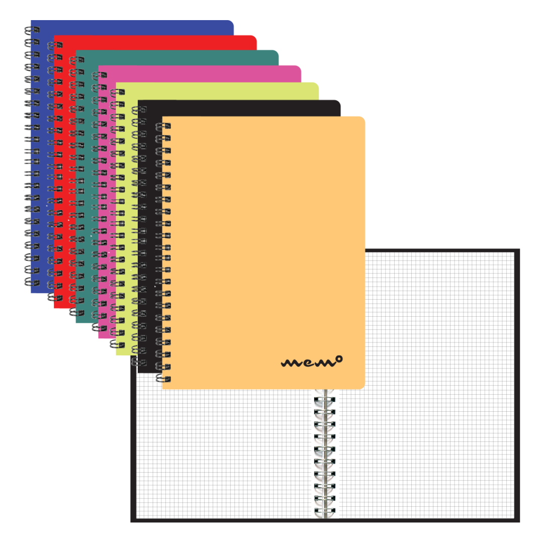 Kaustik spiraalköites A4 MEMO ruuduline värvilised plastkaaned 60 lehte