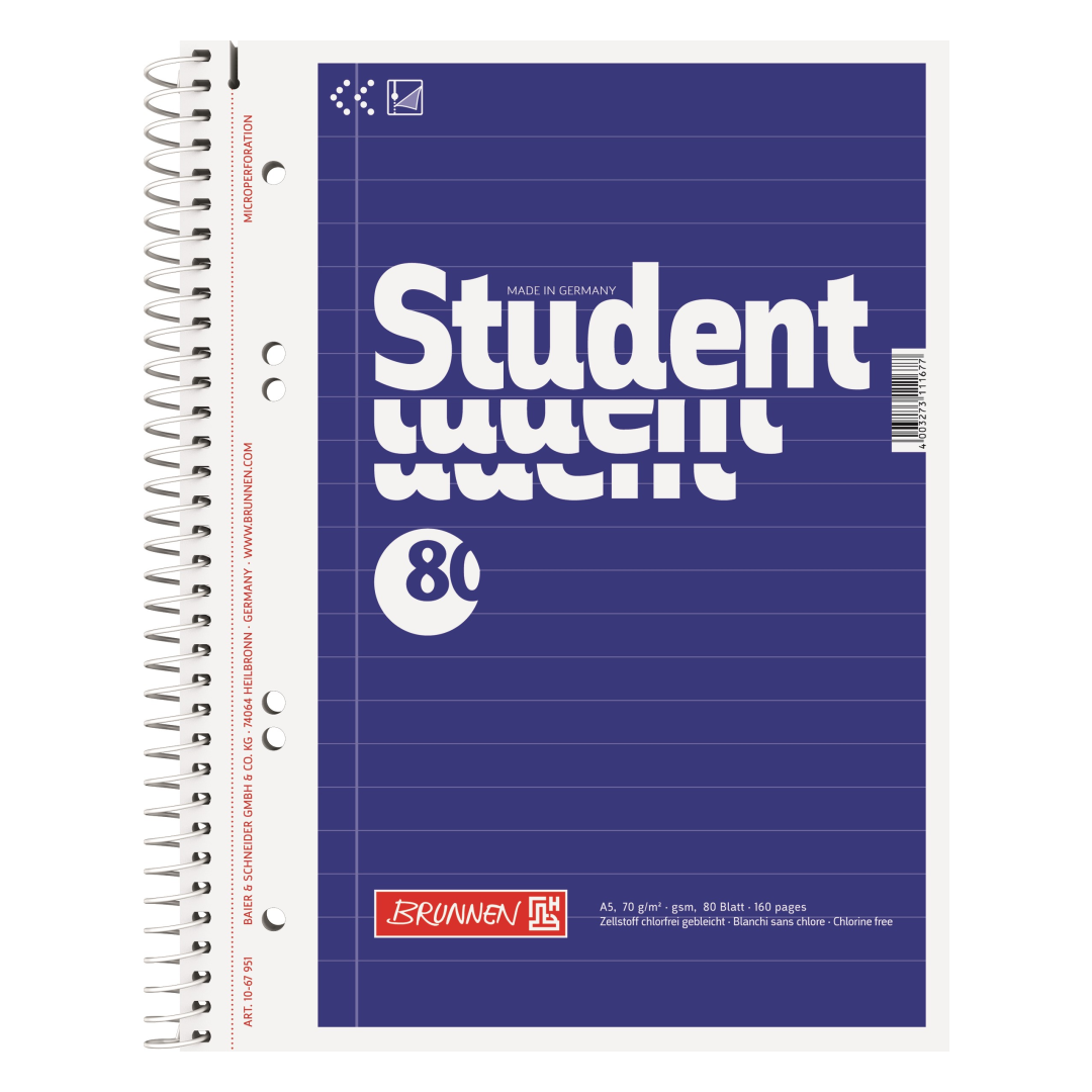 Kaustik spiraalköites A5 jooneline BRUNNEN Student perf.-ga kartongkaaned 80 lehte
