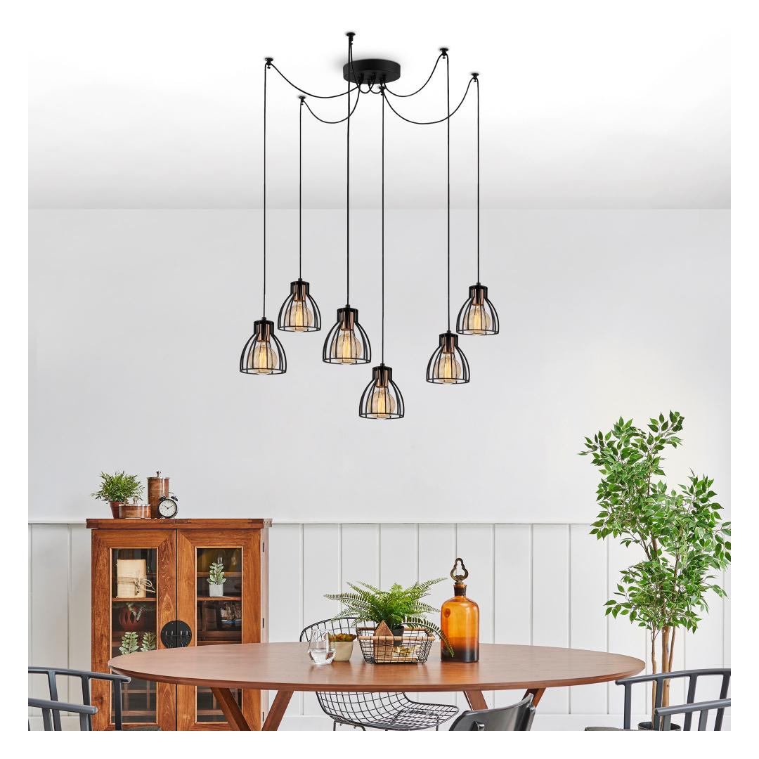 Muuda oma ruumi meie hämmastava tööstusliku lühtri abil, millel on elegantne metallkorpus, mis kiirgab elegantsi ja rafineeritust. See lühter on ideaalne silmapaistev element igas toas, lisades sinu sisustusele modernset hõngu.Tõsta Oma RuumiValgusta oma kodu stiili ja graatsia abil meie tööstusliku lühtriga. Julge must värv lisab igasse ruumi dramaatilisust, samas kui sujuv disain täiendab erinevaid sisustusstiile. Olgu sul soov lisada oma elutuppa keskpunkt või luua hubane õhkkond magamistoas, see lühter kindlasti jätab mulje.Vabasta Oma Loomingulisus135 cm läbimõõdu ja 106 cm kõrgusega on see lühter ideaalne suurus suurematele ruumidele. 6 E27 pesaga saad kohandada valgustust vastavalt oma vajadustele, olgu see siis pehme kuma või ere valgustus. 180 cm kaabli pikkus annab sulle paindlikkuse riputada see lühter just sinu ruumi jaoks sobivale kõrgusele.Tehnilised Üksikasjad:Läbimõõt: 135 cmKõrgus: 106 cmKaane läbimõõt: 15 cmKaane kõrgus: 16 cmKaabli pikkus: 180 cmAlusplaadi läbimõõt: 5 cmAlusplaadi kõrgus: 15 cmPesa tüüp: 6 x E 27 Max 40 WIP kood: IP20Värv: Must Värv: Black