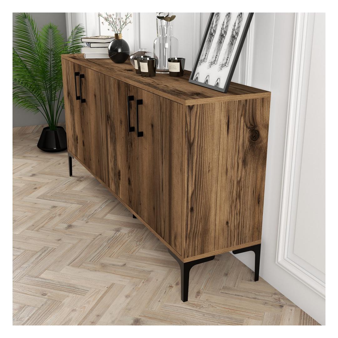 Transformeeri oma ruumi tööstusliku konsooligaUuendage oma eluruumi meie tööstusliku konsooliga, mis on vapustav ese, mis ühendab endas stiili ja funktsionaalsuse. See konsool on loodud nii, et see annab märku, lisades igasse ruumi kaasaegse elegantsi. Tänu elegantsetele metalljalgadele ja 100% melamiiniga kaetud puitlaastplaadi konstruktsioonile on see konsool loodud kestma ja pidama vastu igapäevasele kasutamisele.Rikkalik panipaik oma asjadeleÜtle hüvasti segadusele ja tere korraldusele selle konsooli arvukate riiulite ja täiendavate hoiuvõimalustega. Kui teil on vaja kohta oma lemmikraamatute väljapanekuks, dekoratiivsete esemete esitlemiseks või igapäevaste esemete hoidmiseks, siis see konsool on teie jaoks olemas. Avar disain võimaldab teil hoida oma asjad käeulatuses, säilitades samal ajal puhta ja korrastatud ruumi. Esteetiline atraktiivsus ja mitmekülgsusSelle konsooli pähklipuidust värv lisab teie kodu sisustusele soojust ja elegantsust. Selle tööstuslik kontseptsioon sulandub vaevata erinevate sisustusstiilidega, muutes selle mitmekülgseks esemeks, mis sobib igasse ruumi. Ükskõik, kas soovite luua hubase elutoa, stiilse esiku või funktsionaalse kodukontori, see konsool on ideaalne täiendus, mis seob teie ruumi kokku. Tehnilised üksikasjad:KonsoolMaterjal: Materjal: Materjal: Materjal: Materjal: Materjal: Materjal: Materjal: materjal: 100% melamiiniga kaetud puitlaastplaatPaksus: 18 mmJalad: MetallKäepide: Käepidemed: PlastistLaius: 160 cmKõrgus: 78 cmSügavus: 35 cmVärv: PähkelpuuKontseptsioon: TööstuslikMuuda oma eluruum meie tööstusliku konsooliga ja koge stiili ja funktsionaalsuse täiuslikku segu. Ärge jätke kasutamata seda võimalust muuta oma kodu ruumiks, mis peegeldab tõeliselt teie isikupära. Tellige kohe ja tõstke oma sisekujundust! Värv: Walnut