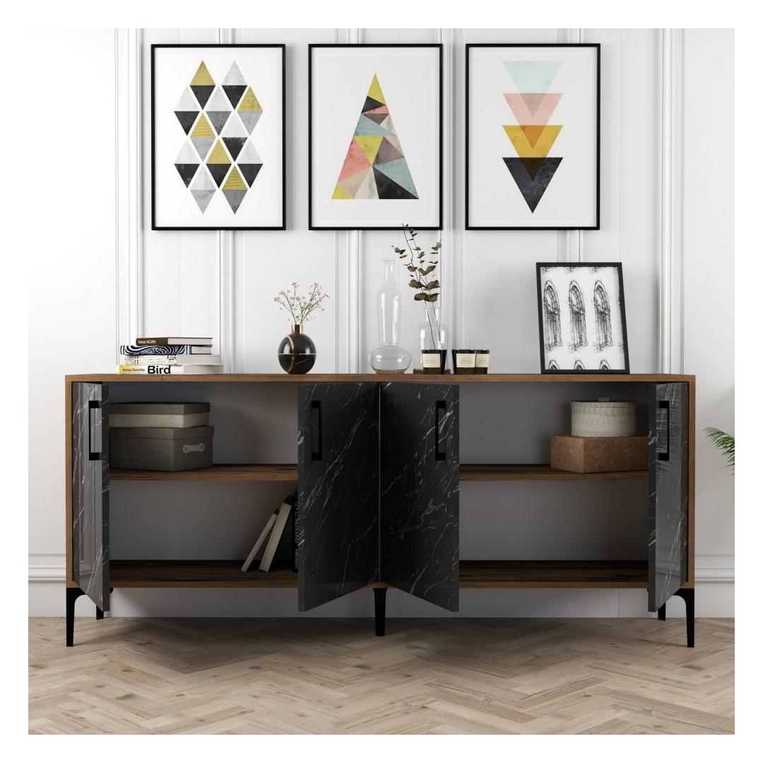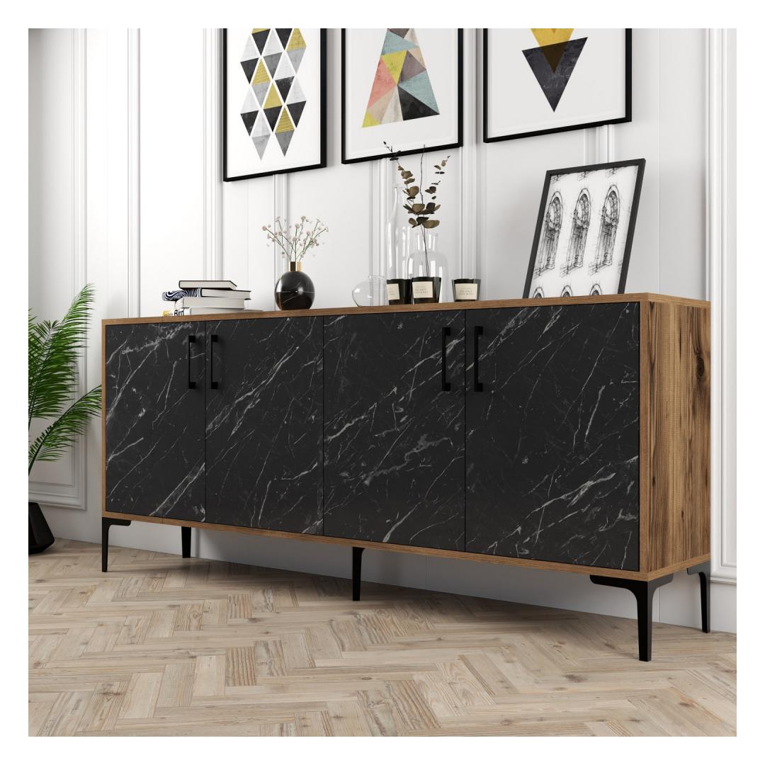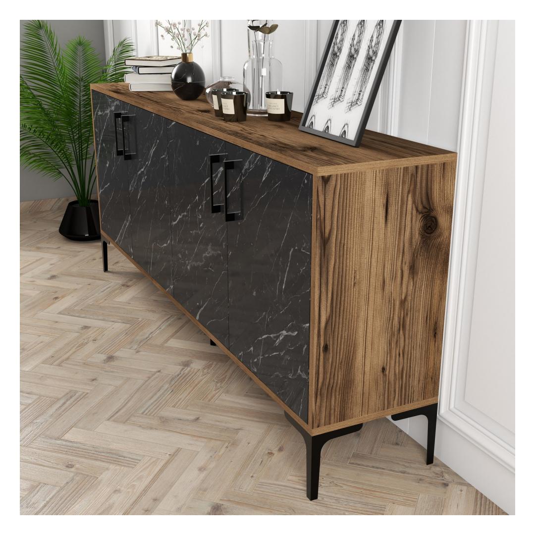 Looge stiilne ja funktsionaalne ruum meie tööstusliku marmorkonsooligaMuutke oma eluruum meie uimastava tööstusliku marmorkonsooliga. See konsool ei ole lihtsalt mööblitükk, see on stiili ja rafineerituse avaldus. Oma elegantse disaini ja moodsa esteetikaga tõstab see koheselt mis tahes ruumi välimust. Tõstke oma ruumi tööstusliku elegantsigaSee 100% melamiiniga kaetud puitlaastplaadist valmistatud konsool on valmistatud kestma. Paksus 18 mm tagab vastupidavuse ja stabiilsuse, samas kui metalljalad, käepidemed ja riputuskangid lisavad industriaalse elegantsi. Pähklipuu ja musta värvi kombinatsioon loob silmatorkava kontrasti, mis lisab teie ruumile sügavust ja iseloomu. Rikkalik hoiustamisvõimalus ja mitmekülgsusSuurepärase 180 cm laiuse ja arvukate riiulitega pakub see konsool rohkelt hoiuruumi kõigile teie hädavajalikele asjadele. Ükskõik, kas soovite näidata oma lemmikdekoratsiooni või hoida oma asju korrastatuna, see konsool on teile sobiv. Seda saab ka hõlpsasti seina külge kinnitada, et suurendada stabiilsust ja turvalisust. Tehnilised üksikasjad:Toote tüüp: Toode on valmistatud ja paigaldatud nii, et see on lihtne ja mugav, kui ka lihtne: KonsoolMaterjal: Materjal: Materjal: Materjal: Materjal: Materjal: Materjal: Materjal: materjal: 100% melamiiniga kaetud puitlaastplaatPaksus: 18 mmMetallist jalg, käepide ja riputuskang lisab vastupidavust ja stiiliLaius: 180 cm, kõrgus: 78 cm, sügavus: 35 cmArvukad riiulid rohkeks hoiustamiseksSaab stabiilsuse tagamiseks kinnitada seinaleVärv: pähkelpuu ja mustLooge meie tööstusliku marmorist konsooliga ruum, mis peegeldab teie unikaalset stiili. Tellige kohe ja muutke oma eluruum stiilseks pühapaigaks! . Värv: Walnut Black