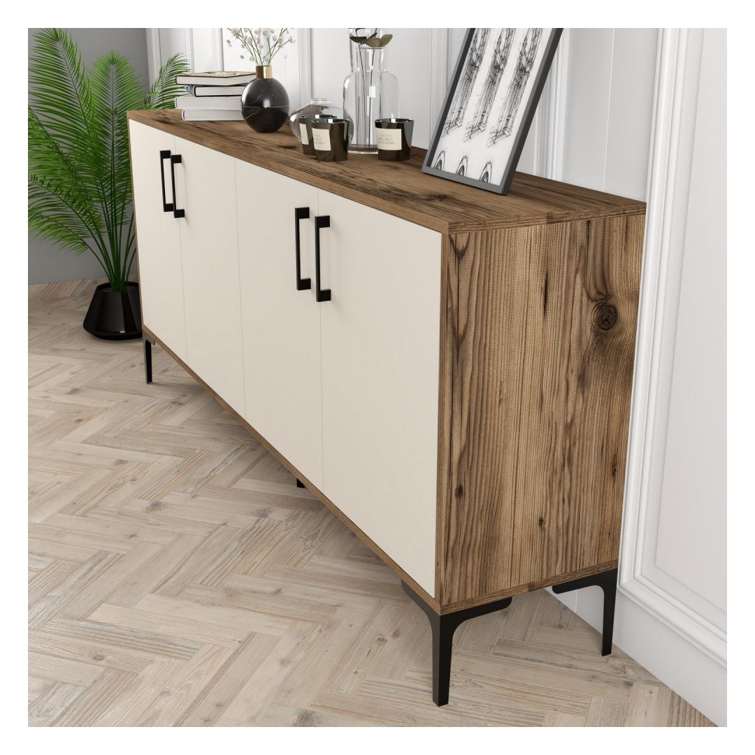Loo stiilne ja funktsionaalne ruum meie tööstusliku konsooligaMuuda oma eluruum modernseks ja trendikaks pelgupaigaks meie tööstusliku konsooliga. See 100% melamiiniga kaetud puitlaastplaadist valmistatud konsool ei ole mitte ainult vastupidav, vaid ka elegantse ja rafineeritud välimusega. Tõstke oma sisekujundust tööstusliku võlu abilMetallist jala, käepideme ja riputajaga lisab meie konsool igasse ruumi tööstusliku võlu. Pähklipuu- ja kreemikat värvi kombinatsioon loob uimastava kontrasti, mis sobitub vaevata iga interjööri stiiliga. Rikkalik hoiuruum teie asjade jaoksArvukate riiulitega pakub see konsool rohkelt hoiuruumi kõigile teie asjadele. Ükskõik, kas soovite oma lemmikraamatuid eksponeerida, dekoratiivseid esemeid esitleda või oma hädavajalikke asju korrastada, meie konsool on teie jaoks olemas. Muuduvuslik disain teie mugavuse tagamiseksMeie konsool ei paku mitte ainult rohkelt hoiuruumi, vaid seda saab ka seina külge kinnitada, et lisada stabiilsust. See mitmekülgne disain tagab, et teie konsool püsib kindlalt paigal, andes teile meelerahu. Tehnilised üksikasjad:Toote tüüp: Pult: Puldi ja puldi, mis ei ole mõeldud kasutamiseks: KonsoolMaterjal: Materjal: Materjal: Materjal: Materjal: Materjal: Materjal: Materjal: materjal: 100% melamiiniga kaetud puitlaastplaatPaksus: 18 mmMetallist jalg, käepide ja riputusklamberLaius: 180 cm, kõrgus: 78 cm, sügavus: 35 cmVärv: pähkelpuu ja kreemikasArvukad riiulid hoiustamiseksSaab stabiilsuse tagamiseks kinnitada seinale Värv: Walnut Cream