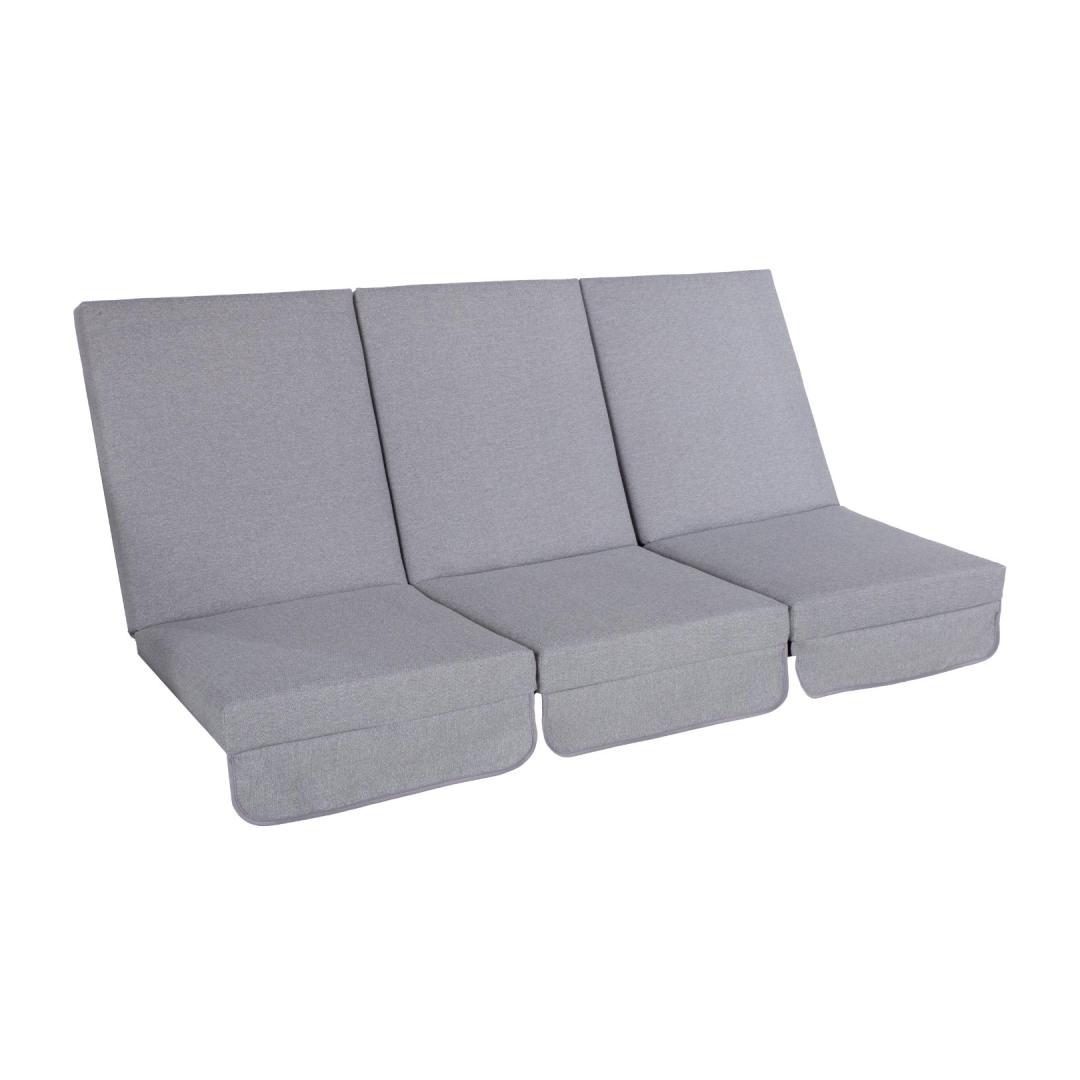 Kiigepadjad MONTREAL 114x52x9cm, 3tk, hall, kangas 468, 100% polüester. Sobib kiigeraamidele MONTREAL, CAIRO. Ühe padja mõõdud: laius 52cm, pikkus 114cm, paksus 9cm. Komplektis 3tk.