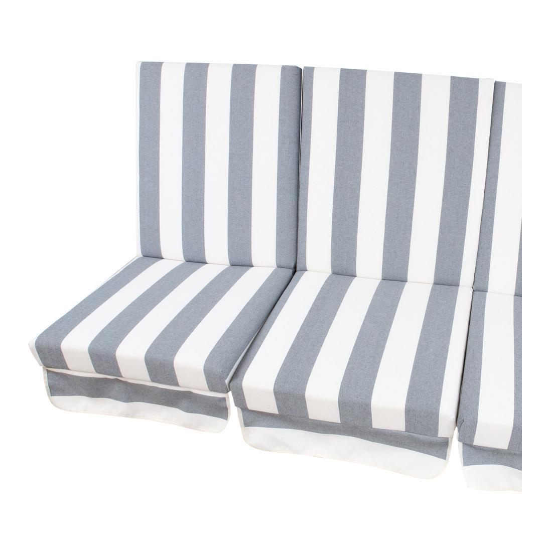 Kiigepadjad MONTREAL 114x52x9cm/3tk, must-valge triibuline. Materjal: 100% polüester. Täidis: purustatud poroloon.