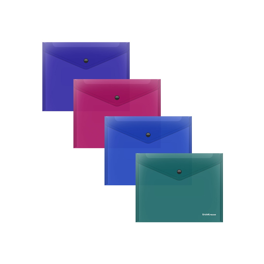 Ümbrikumapp A5+ on valmistatud kvaliteetsest poolläbipaistvast plastikust, Mõeldud dokumentide hoidmiseks. Erinevad värvid. Usaldusväärne nupusulgur dokumentidele kiireks juurdepääsuks. Suurus - 239x189 mm, paksus - 0,18mm.