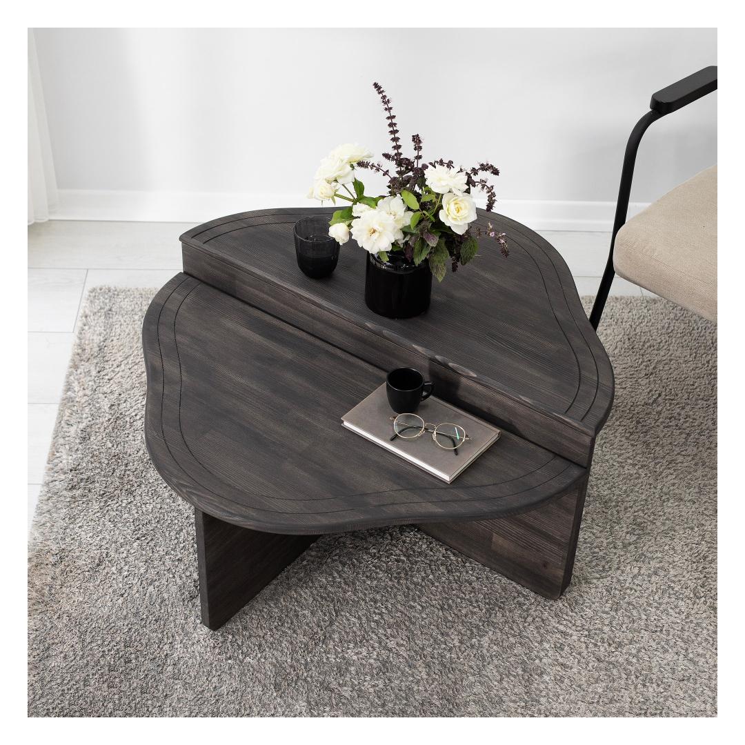 Valmistatud 100% männipuidust, ei ole see kohvilaud mitte ainult ilus, vaid ka vastupidav ja pikaealine. Rikkalik antratsiidi värv lisab igale sisustusele rafineerituse, samas kui tugev konstruktsioon tagab, et see tükk jääb sinu koju aastateks.