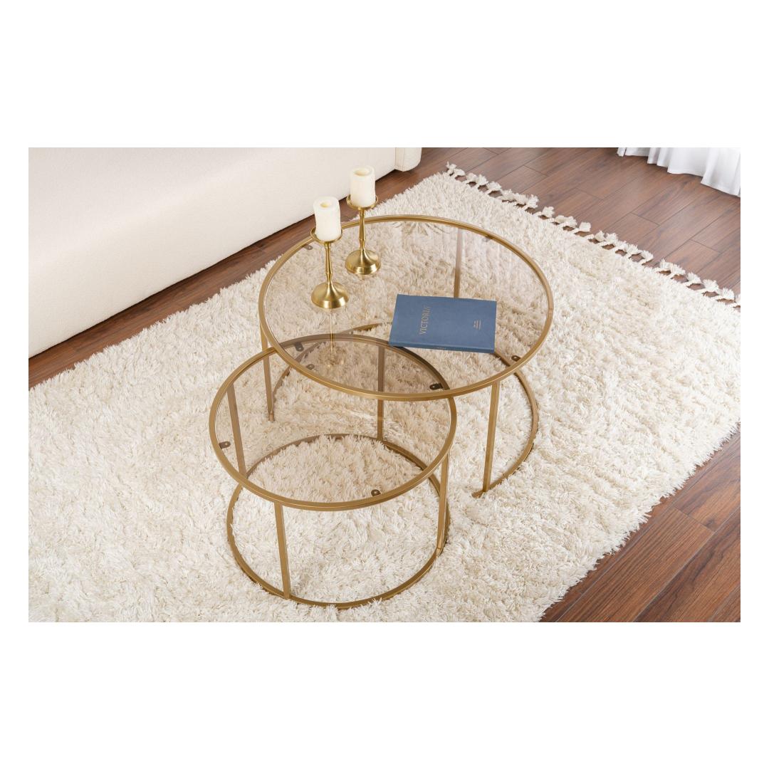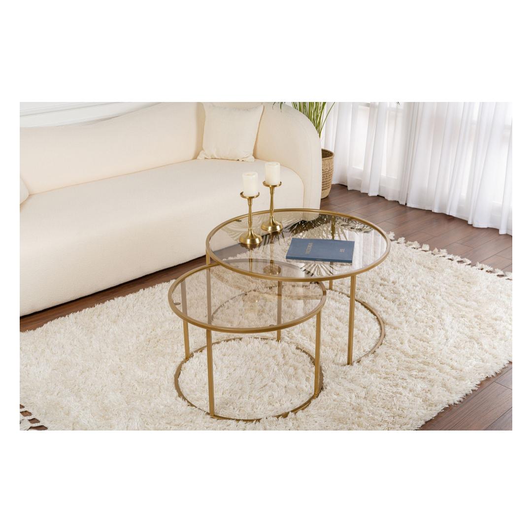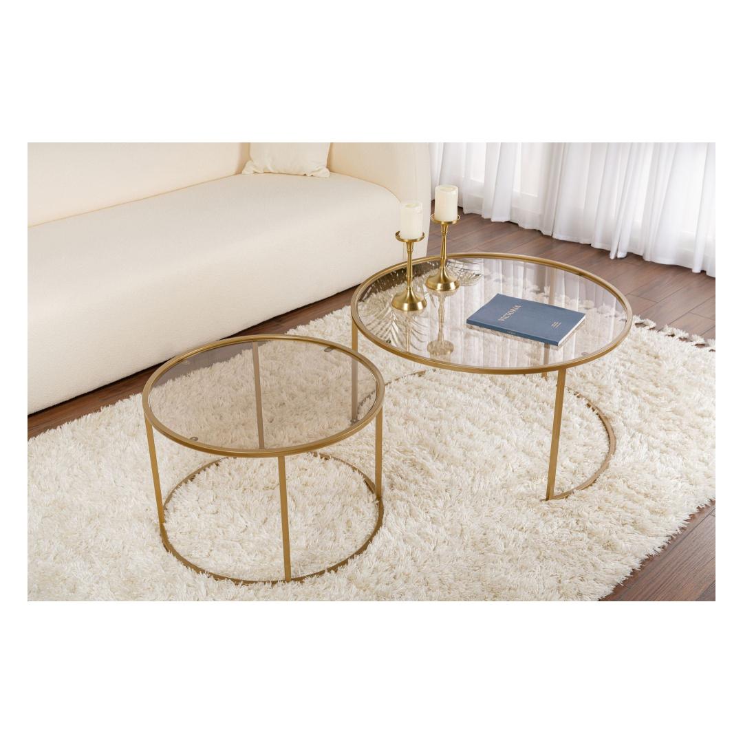 Lisa oma koju modernset elegantsi selle suurepärase kohvilaudade komplektiga. Kuld- ja pronksitoonide kombinatsioon loob luksusliku ja ajatu ilme, mis jätab mulje sinu külalistele ning muudab sinu elutoa kodu keskpunktiks.