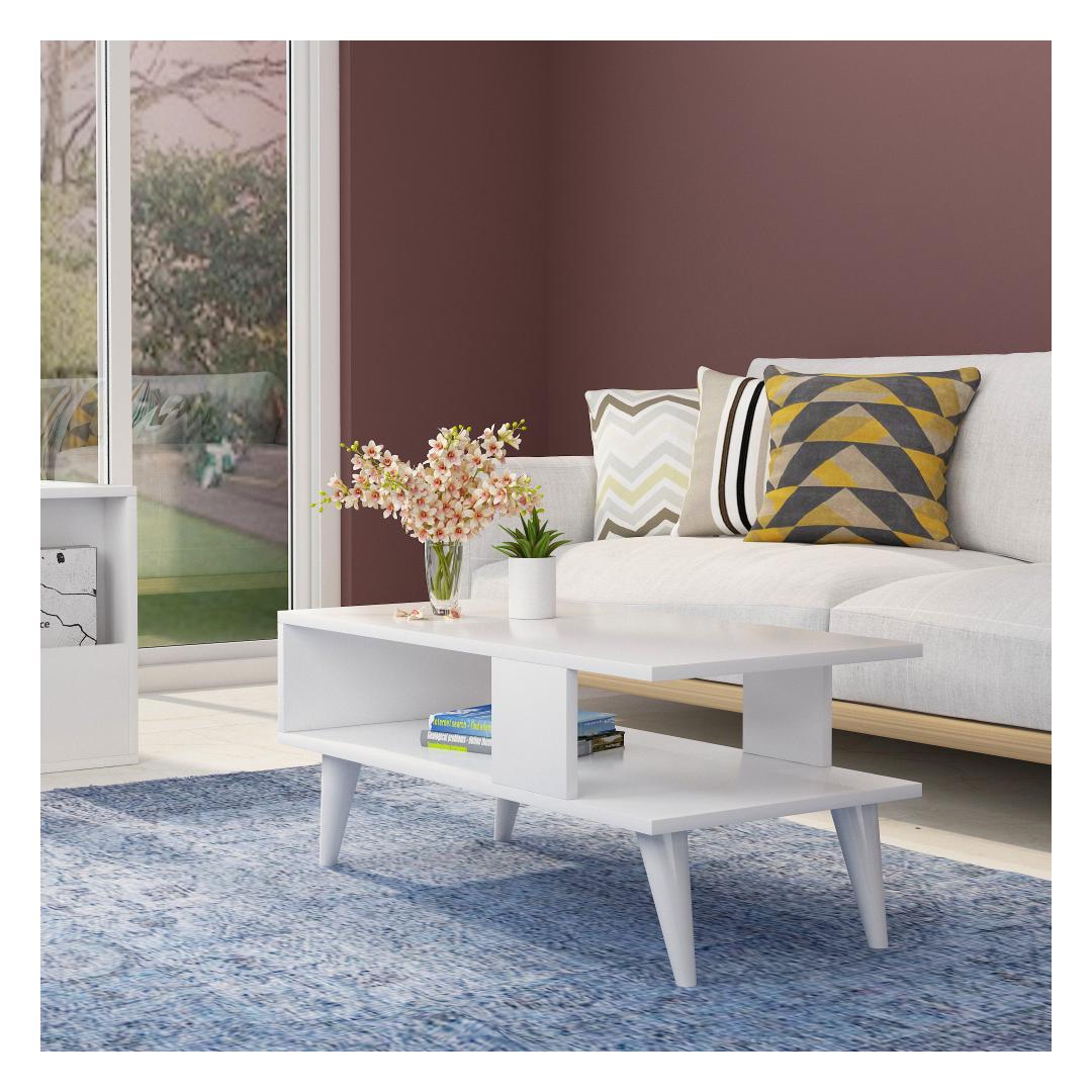 Kohvilaual on hämmastav valge värv, mis õhkab puhtuse ja rahulikkuse tunnet. See neutraalne toon täiendab vaevata mis tahes värviskeemi, muutes selle mitmekülgseks täienduseks teie kodu sisustusele.