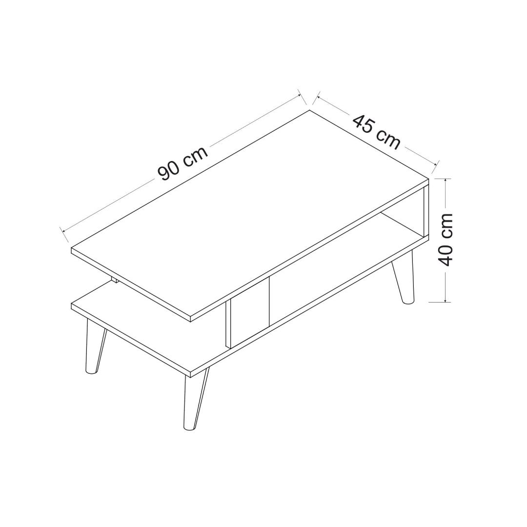 Tänu oma elegantsele ja kaasaegsele disainile sobitub see kohvilaud vaevata mis tahes sisekujundusega, lisades teie elutuppa elegantsi ja võlu. Selle puhtad jooned ja minimalistlik siluett loovad ruumikuse tunde, muutes selle teie kodu täiuslikuks keskmeks.